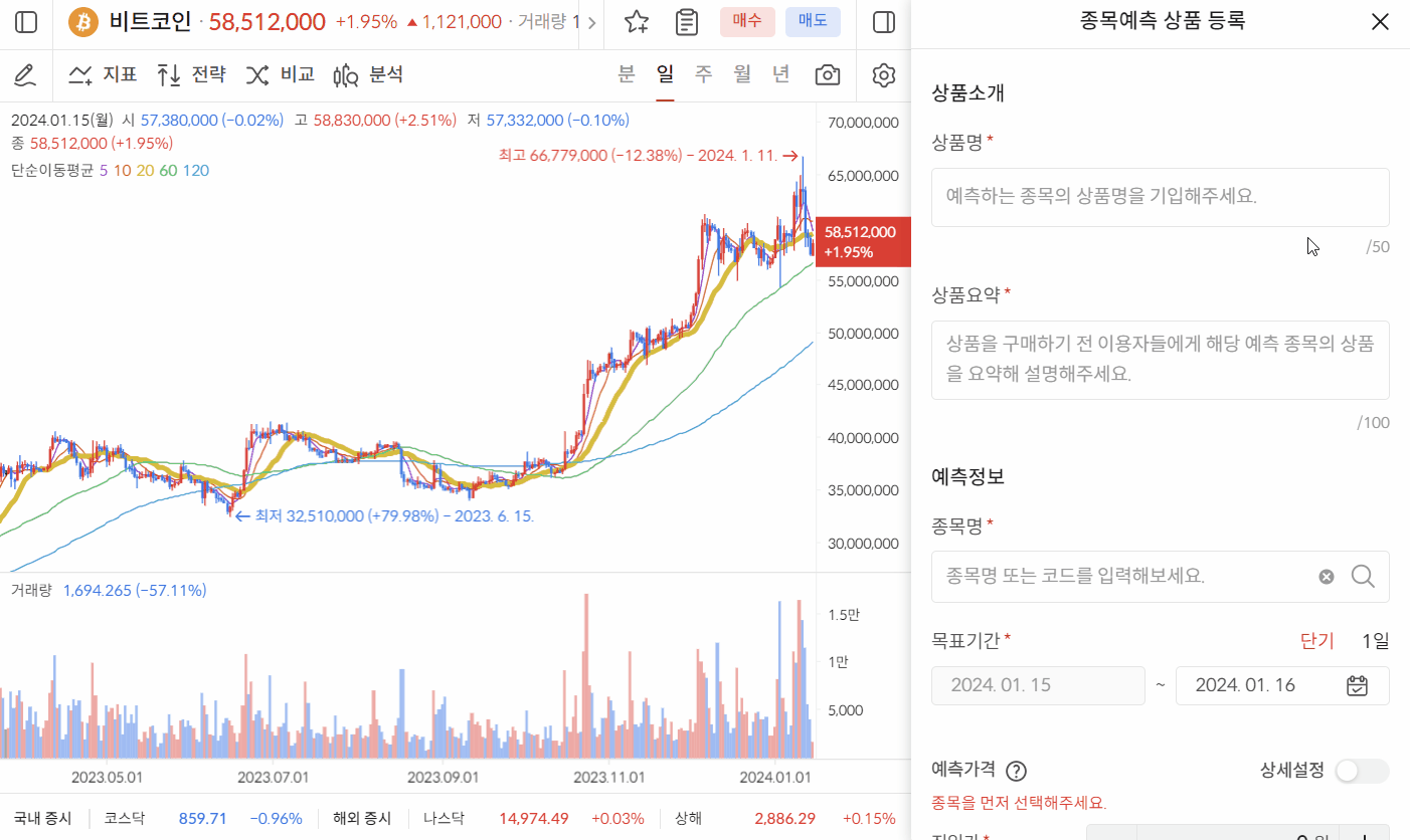 - 이미 종목예측을 운영 중인 종목은 추가 등록이 불가능합니다.(예측 종료 시 해당 종목 등록 가능)