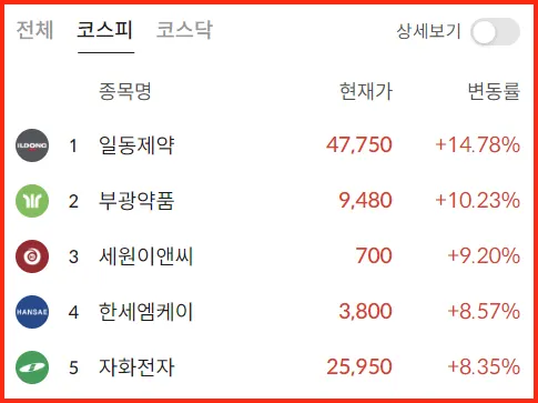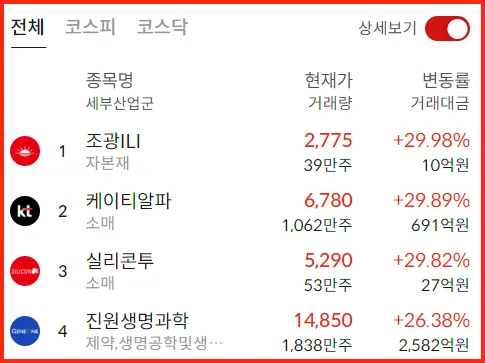 상한가 | 기관 순매수 | 상한가 | 순이익 증가율 | 신규상장 | 공매도 잔고금액 | |