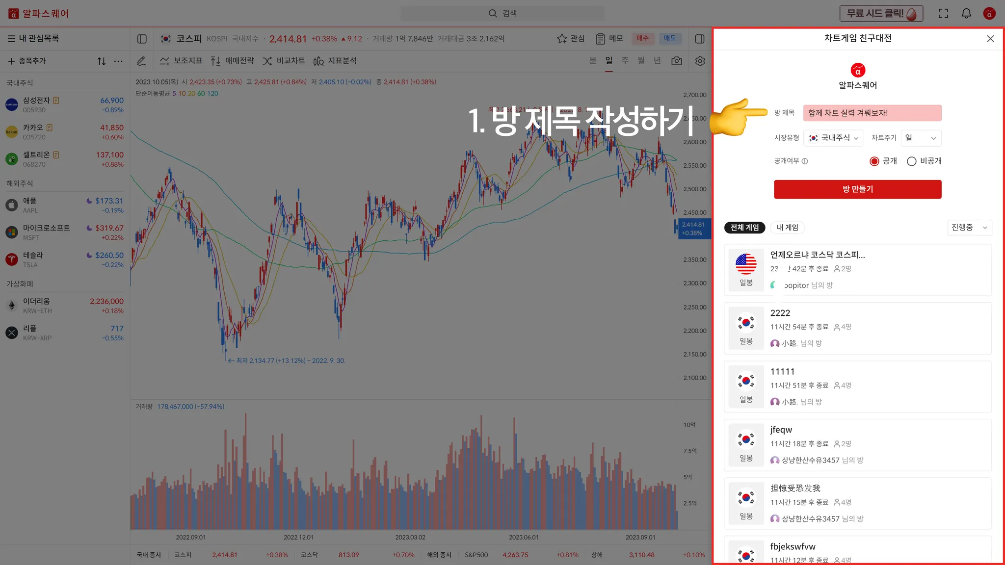 방 제목을 작성합니다.