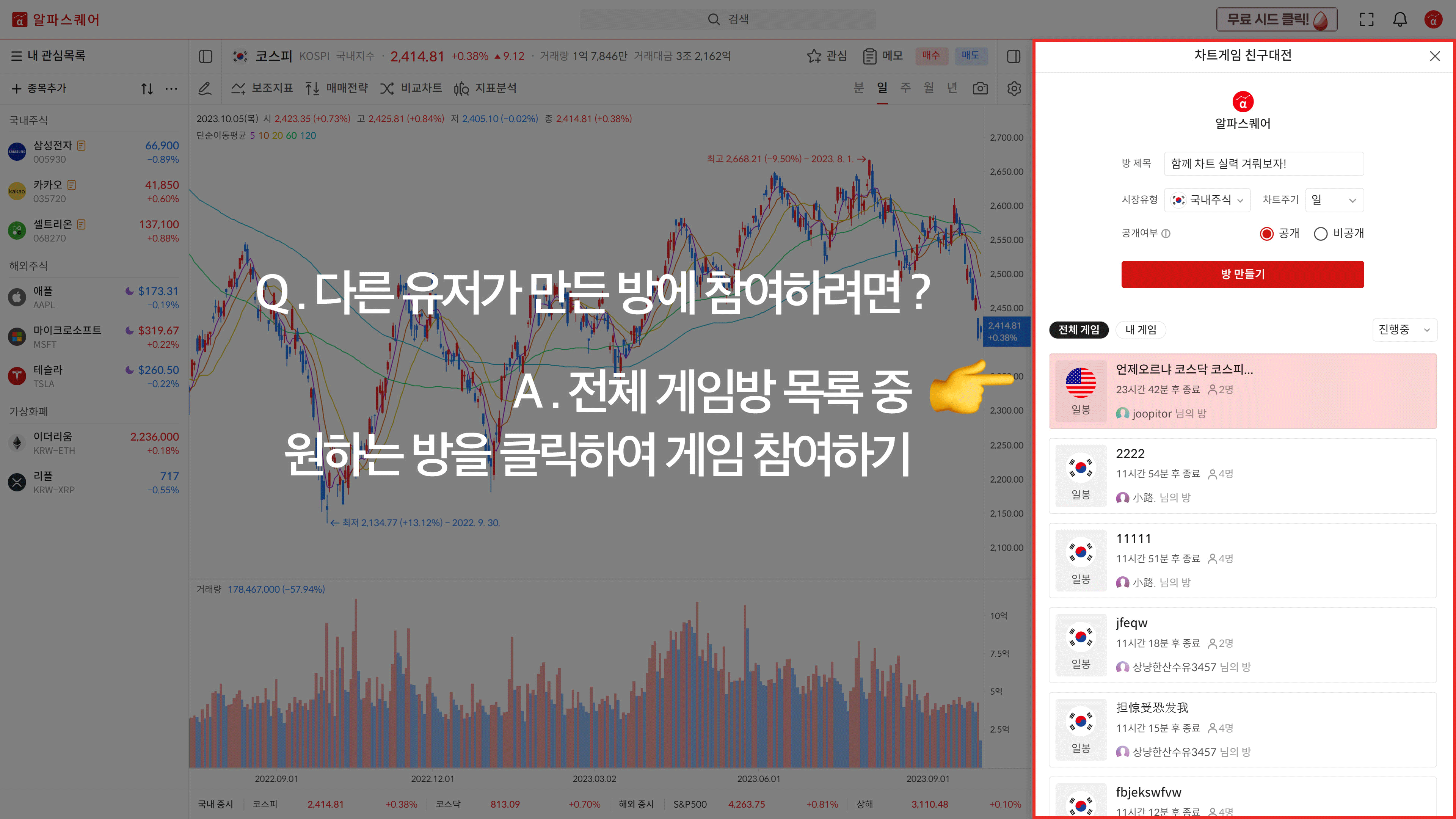 전체 게임 목록 중 원하는 방을 클릭합니다.
