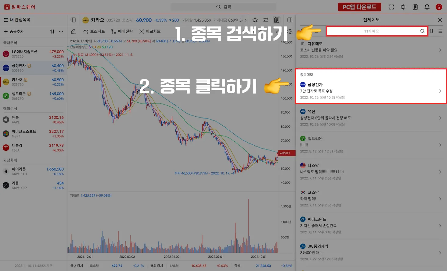 2. 종목메모 확인하기