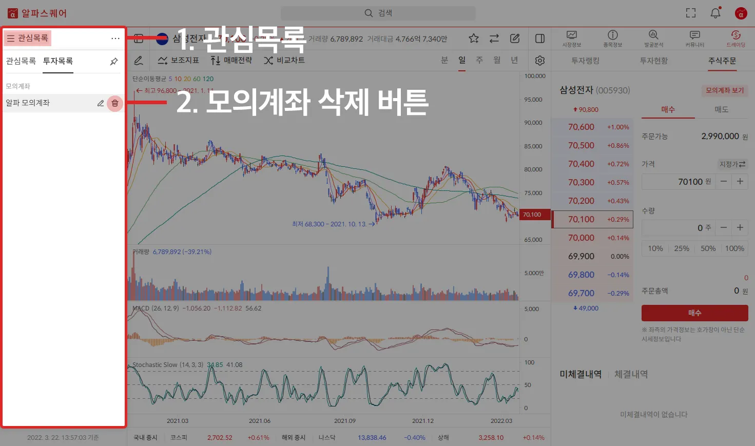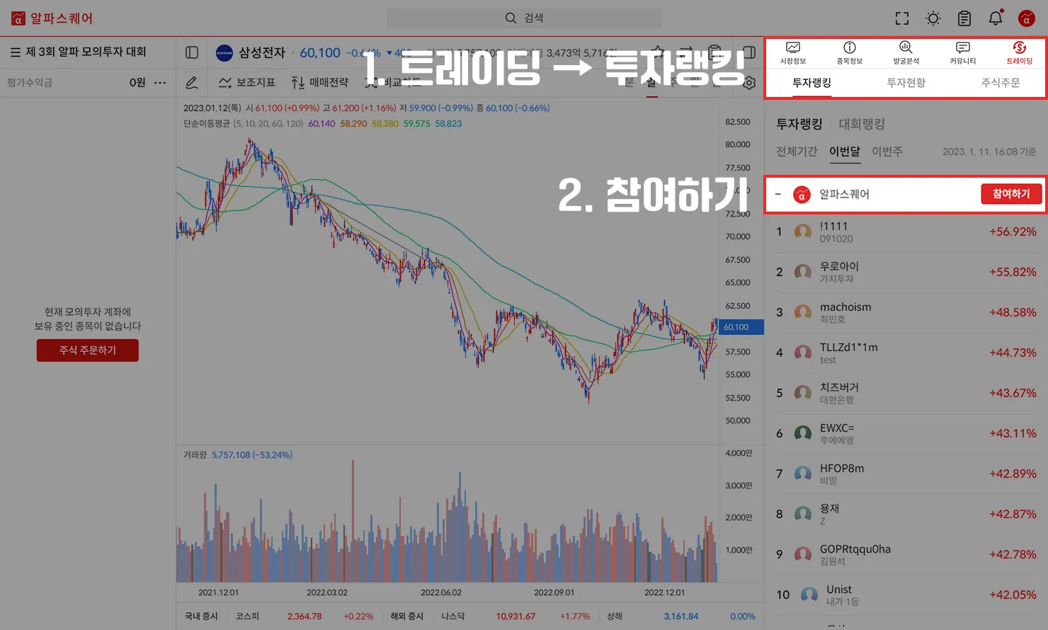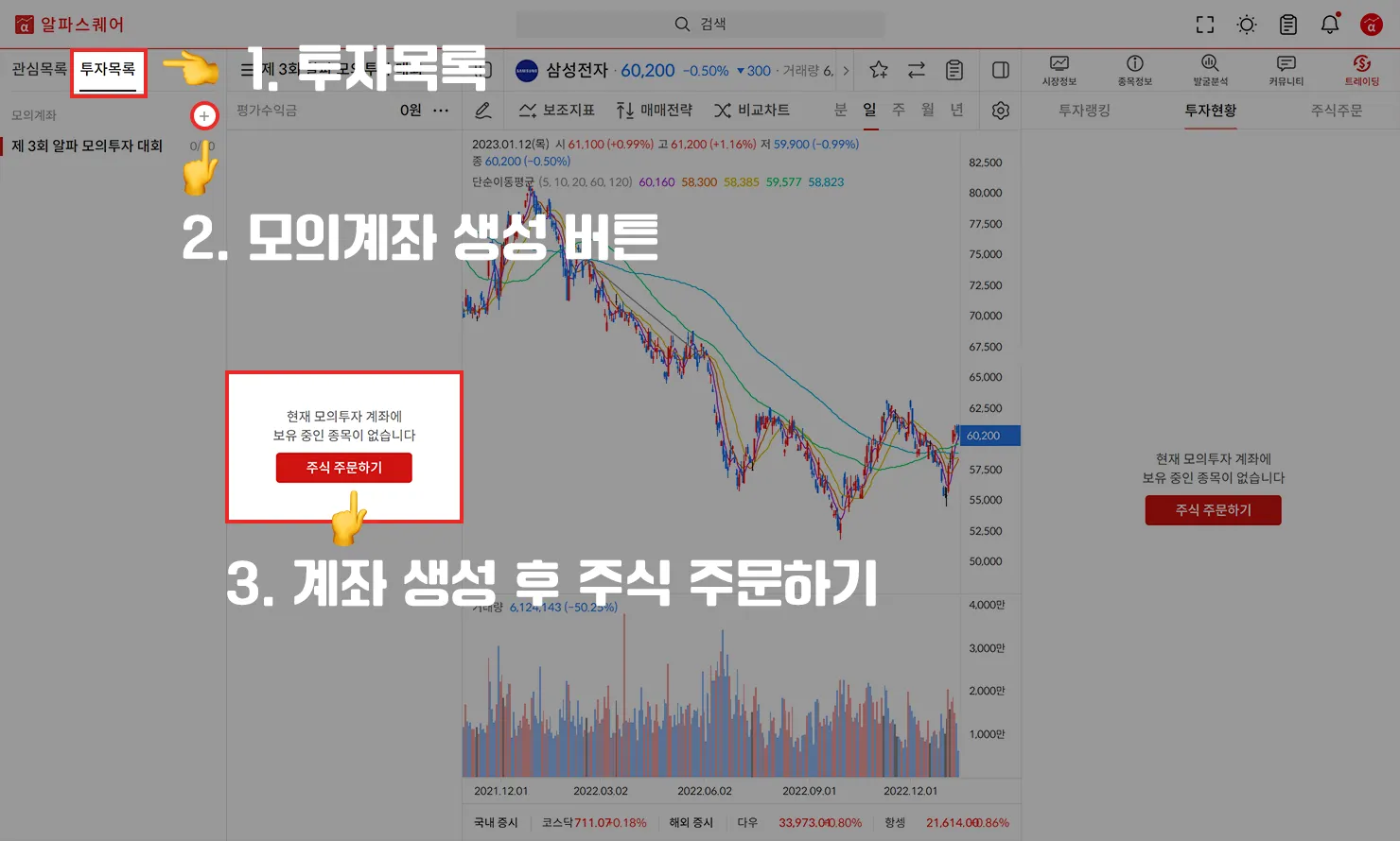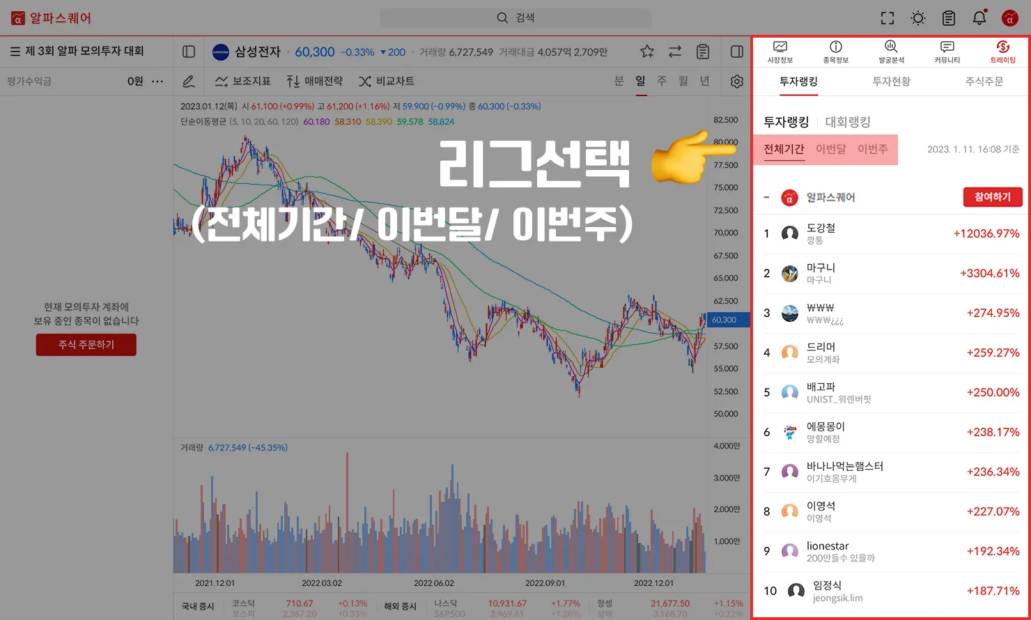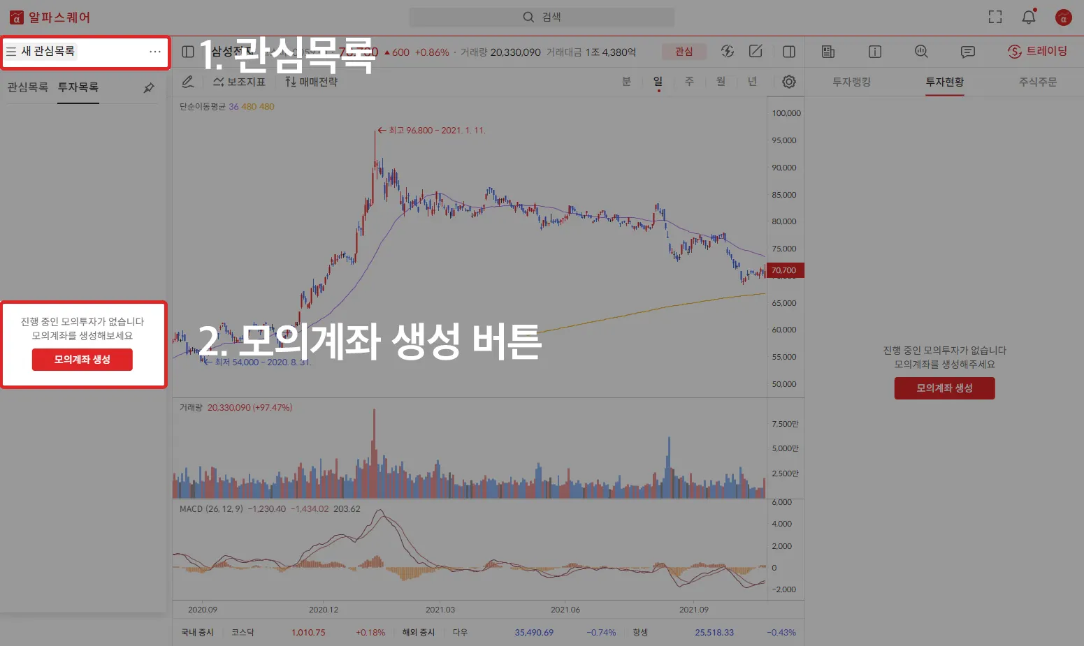 알파스퀘어의 모의투자 환경은 실제 투자환경과 유사하여 주식을 처음 접하거나, 전략을 테스트 해보고 싶은 투자자들에게 적합합니다.