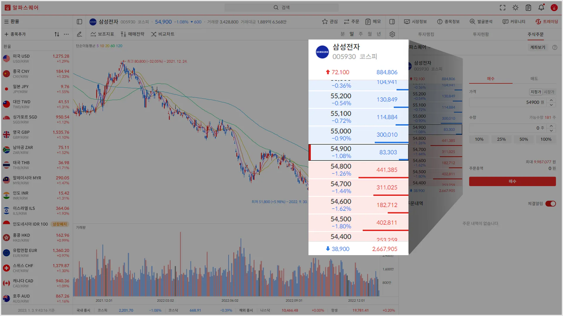 지표분석 탭에 처음 진입할 경우, 주가차트 기준에 상관 없이 분석 기준이 ‘일봉’으로 시작하는 오류를 수정했습니다. 이제 메인차트와 지표분석 기준(일, 주, 월)이 서로 일치하도록 변경되었습니다.