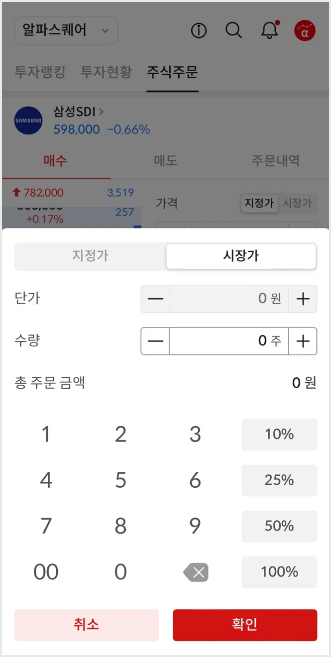 모바일에 주식주문 입력 UI/UX에 전용 키패드가 추가됩니다.