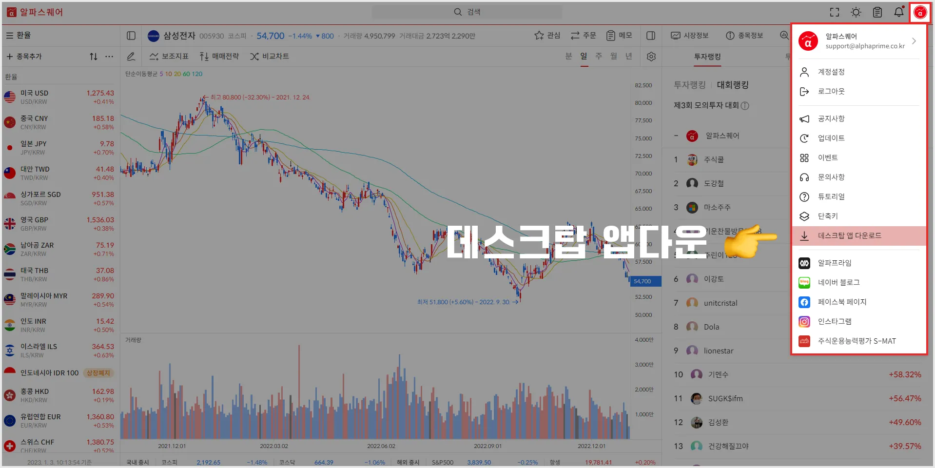 기존에 PC앱을 이용하시는 분들은 프로필 메뉴를 눌러서 다시 다운로드 해야합니다.