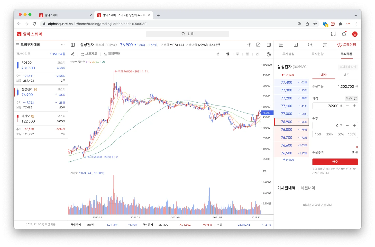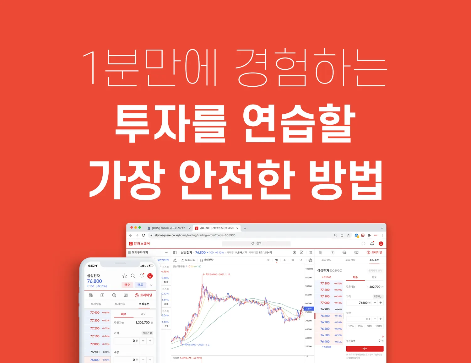 알파스퀘어와 함께 1분만에! 금전적손실 없이! 간편하게! 모의투자를 시작해보세요.