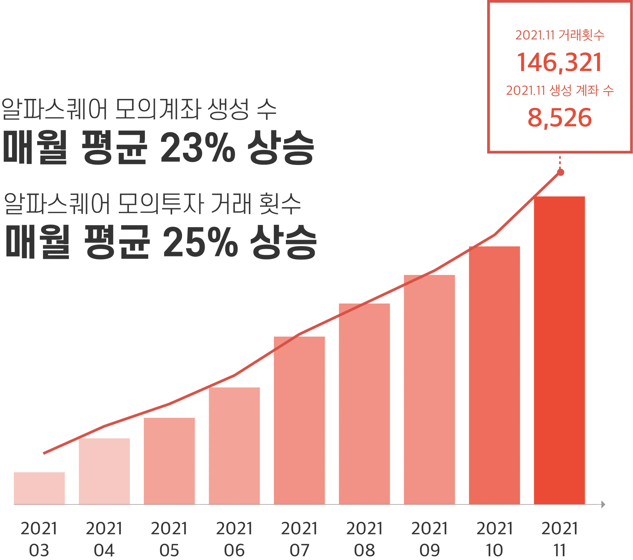 복잡한 인증이 필요했던 모의투자는 이제 그만! 알파스퀘어와 함께 1분만에! 금전적손실 없이! 간편하게! 모의투자를 시작해보세요.