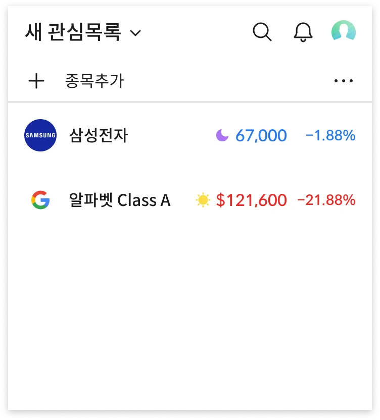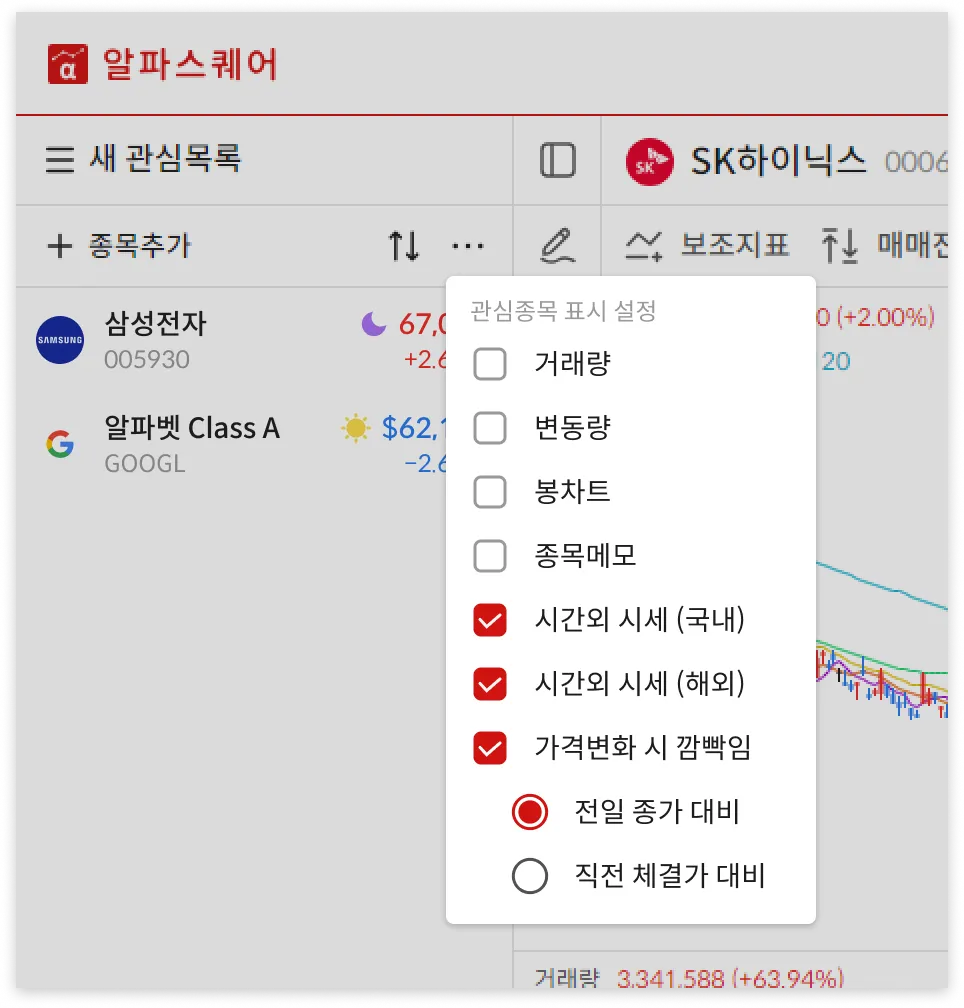 관심종목 설정에서 해당 기능을 사용하실 수 있습니다.