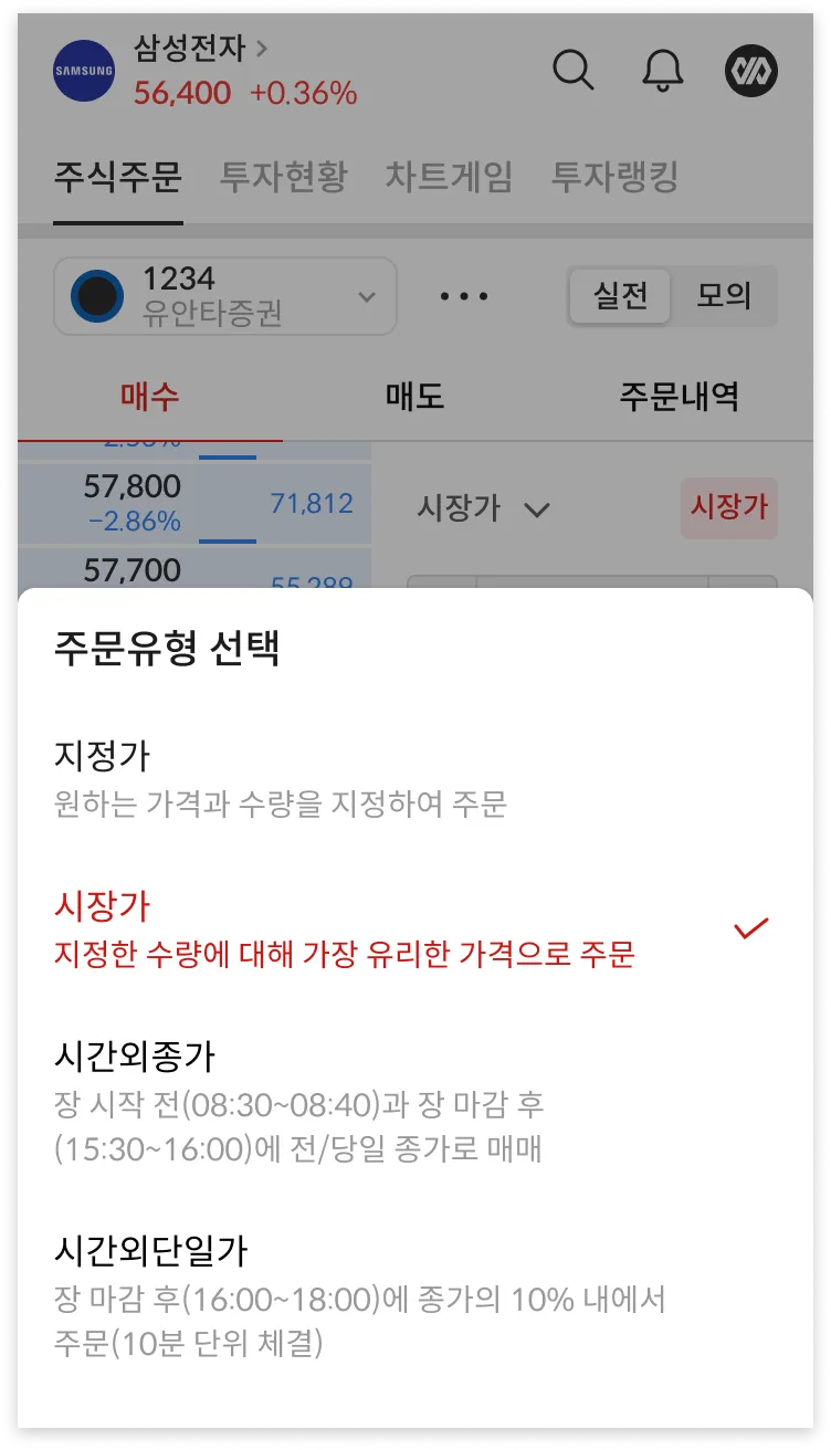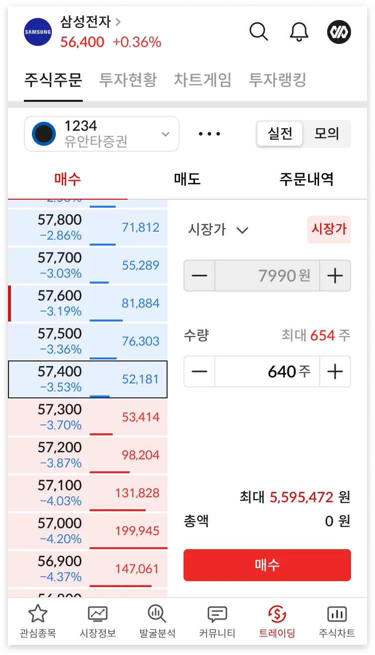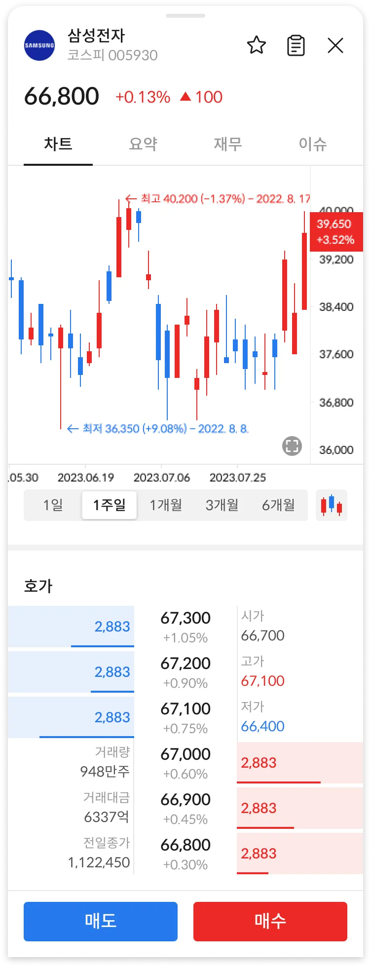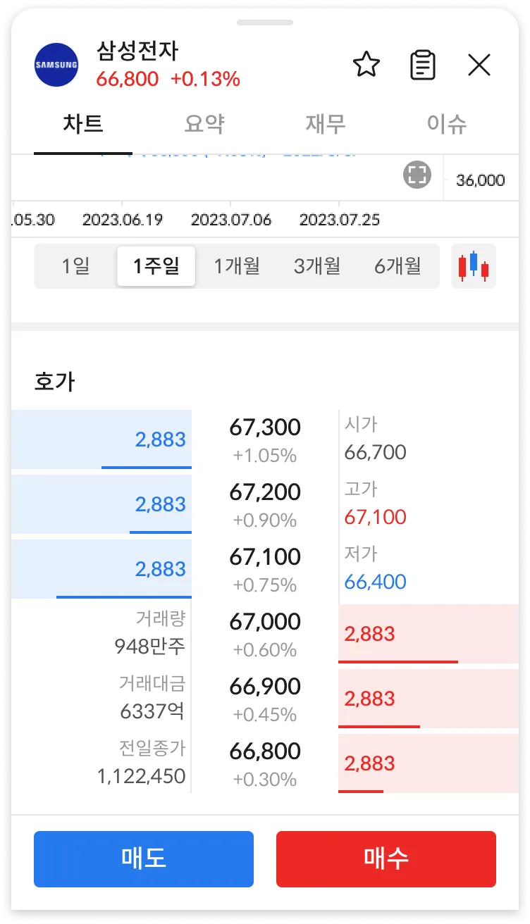 선(line) 차트와 호가 미리보기를 제공하고 매도/매수 버튼으로 접근성 높여 빠르게 주문할 수 있게 됩니다.