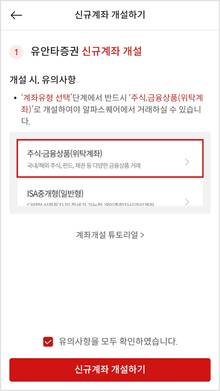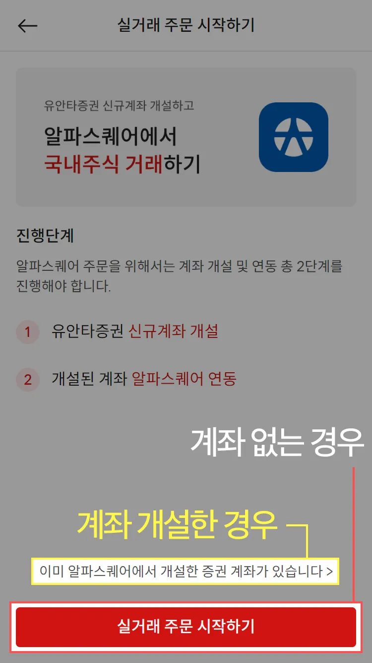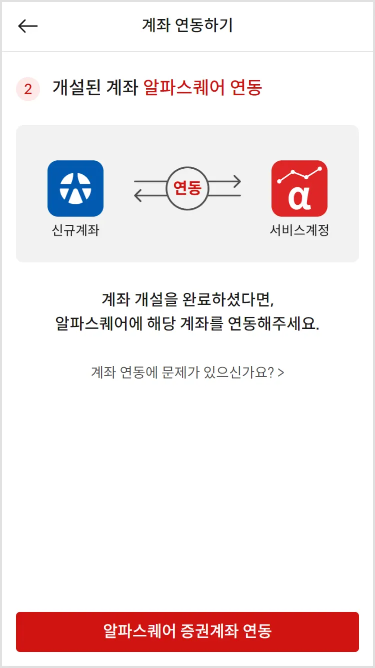 알파스퀘어 증권계좌 연동 버튼 클릭