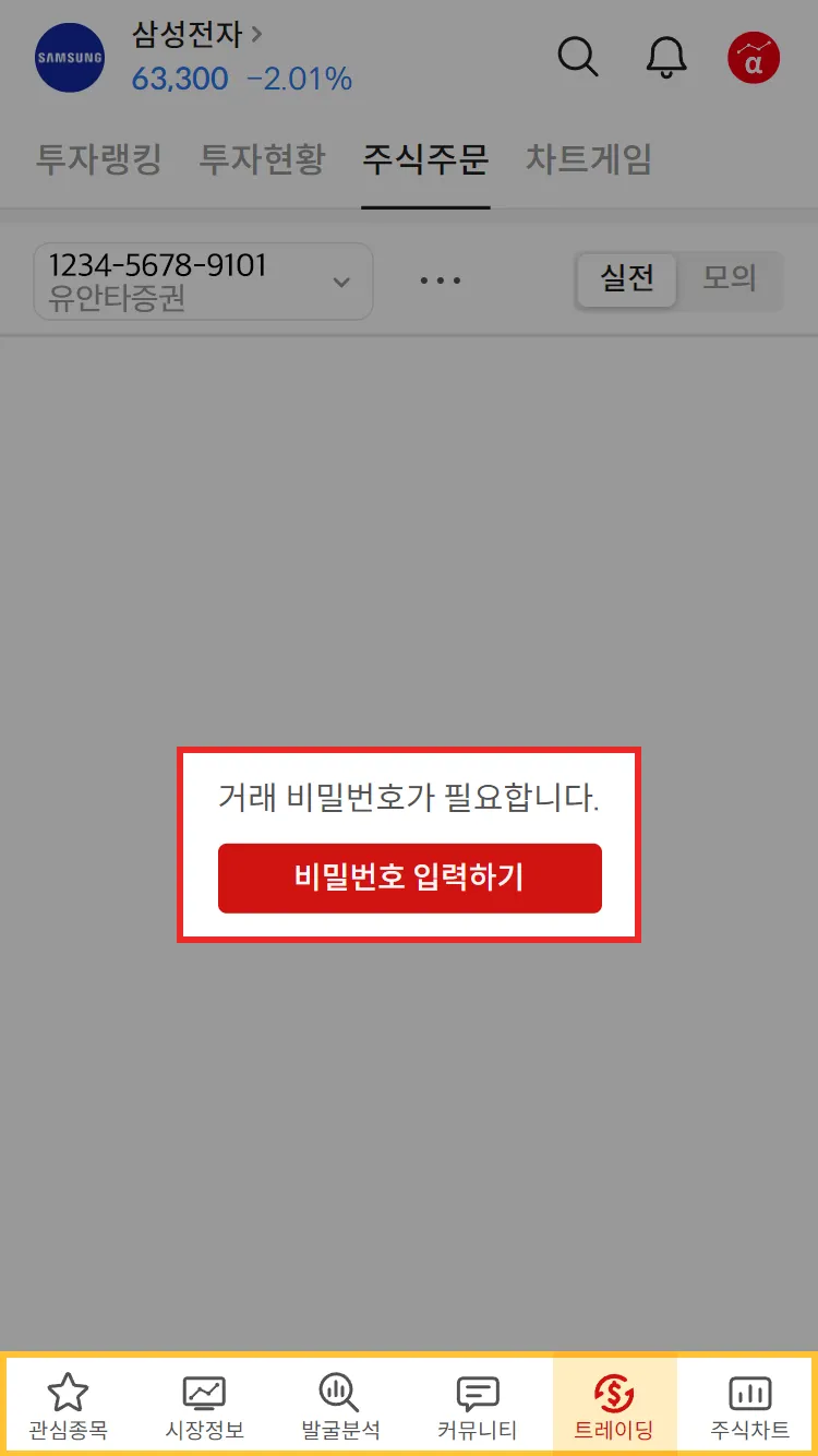 주문 시 거래 비밀번호는 어떻게 설정/변경 하나요?