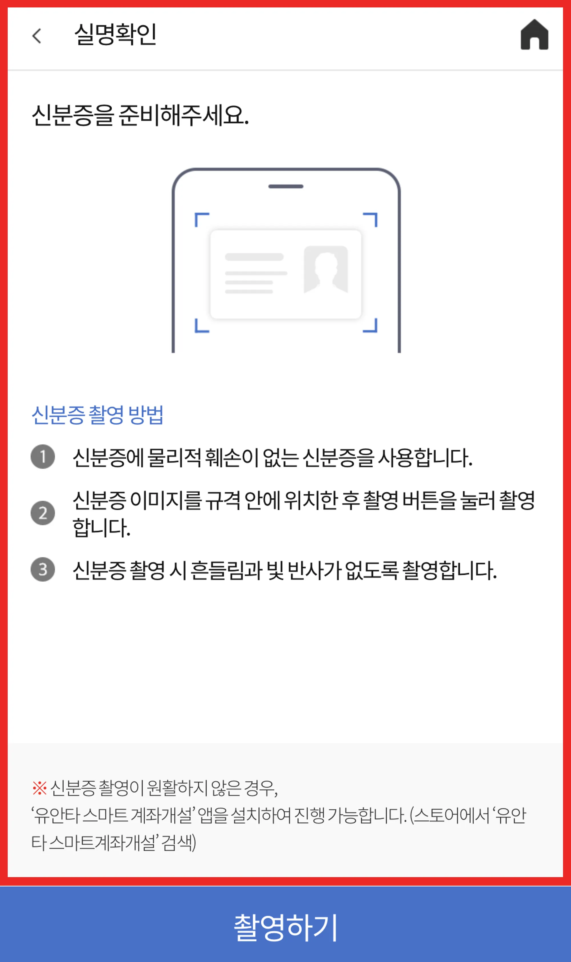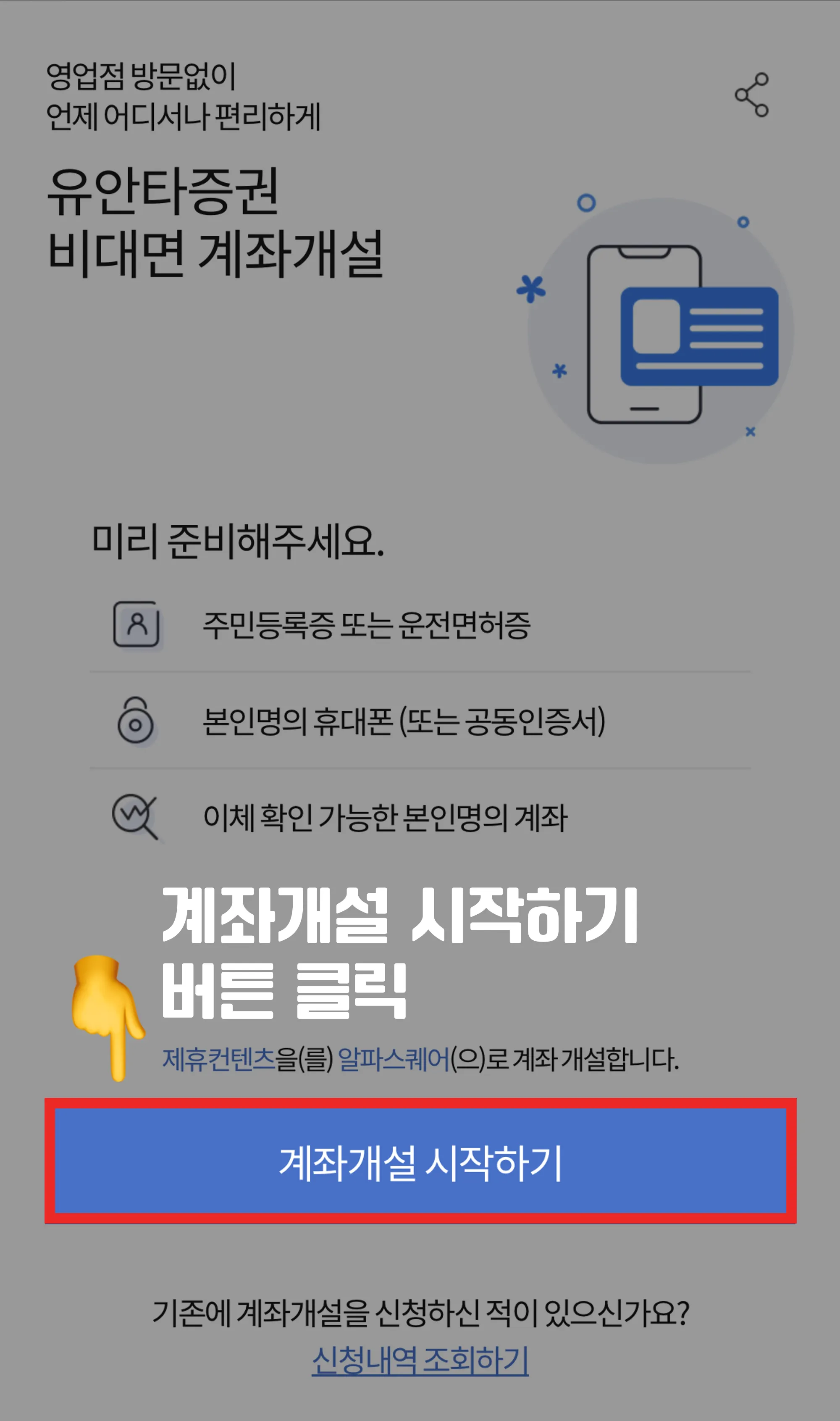 * 계좌개설 전, 신분증(주민등록증, 운전면허증)과 이체확인 가능한 본인 명의 계좌를 준비해주세요.