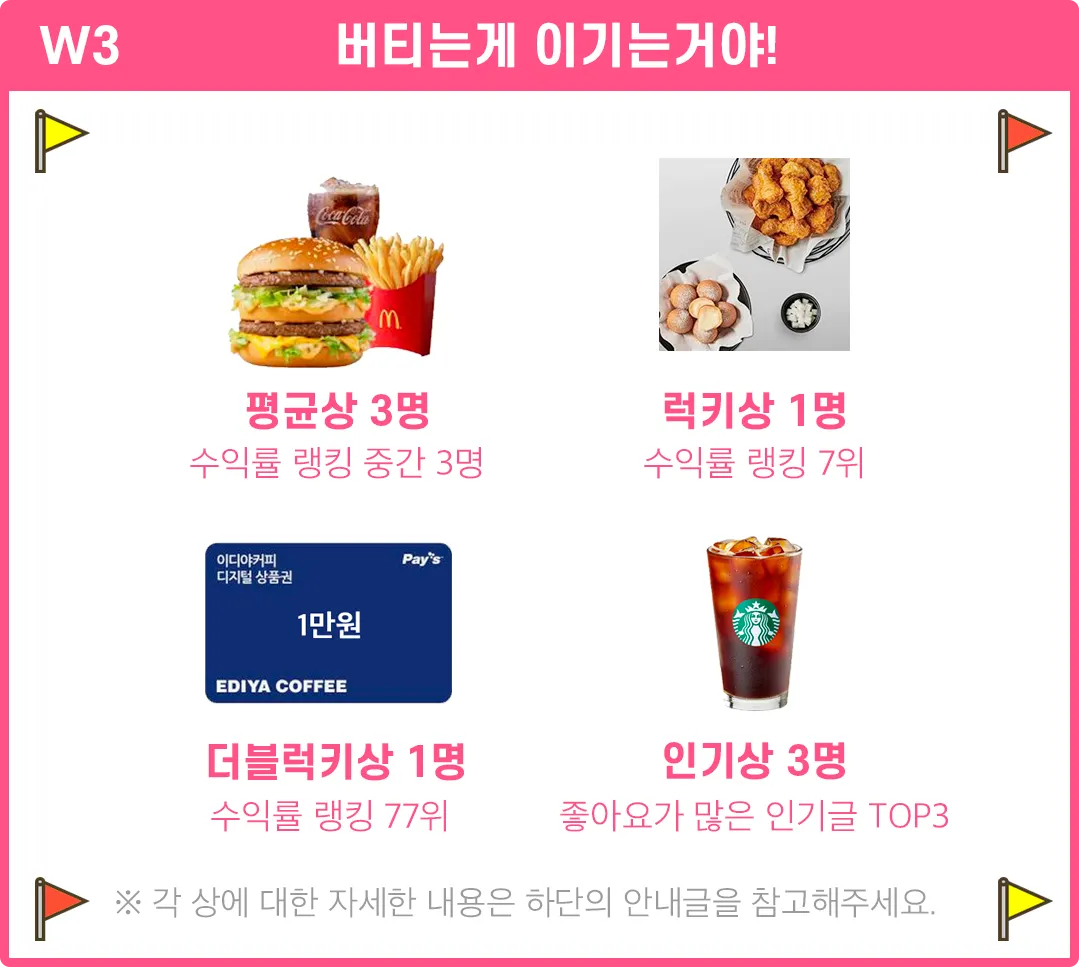 11/12(금) 기준, 수익률 랭킹순위가 중간인 3명에게 증정하는 상