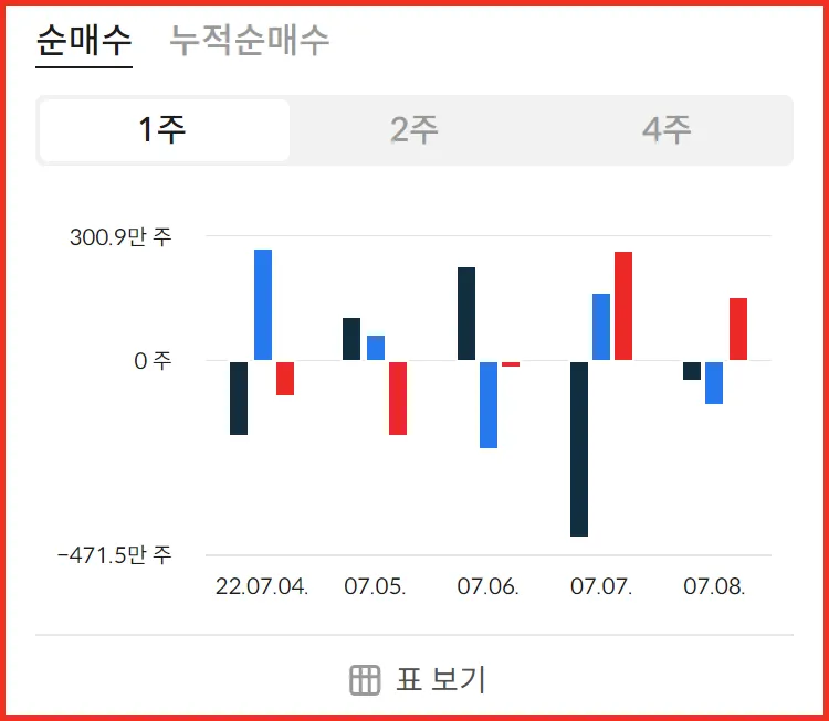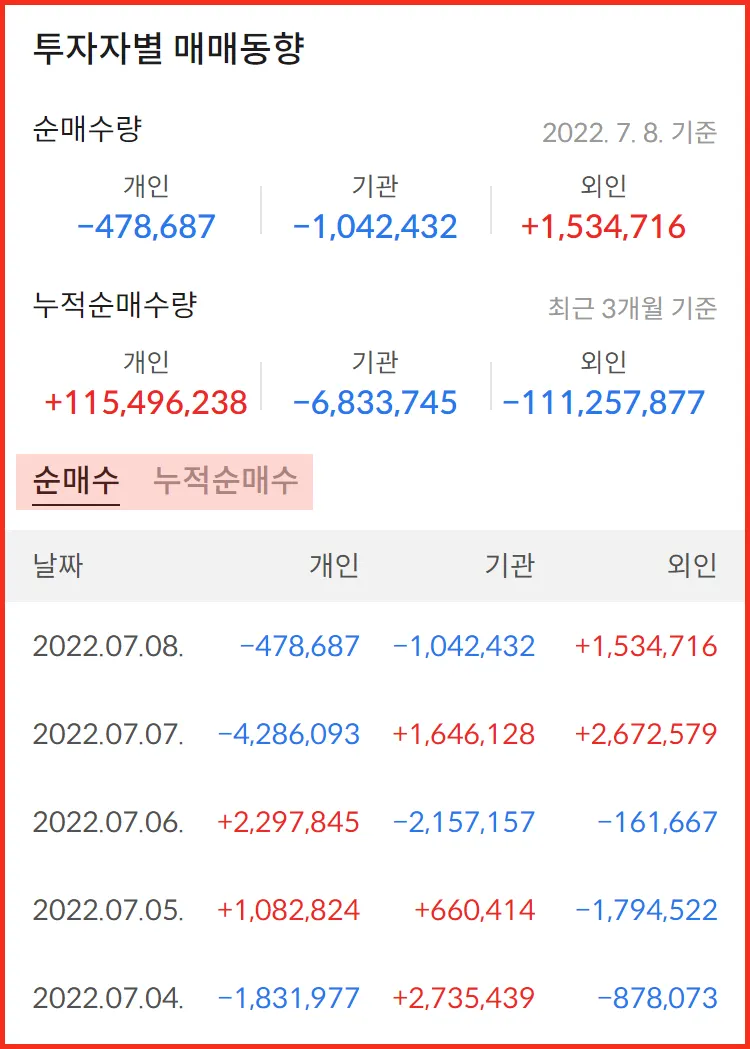 투자성향에 따라 순매수/누적순매수 정보를 활용할 수있습니다.