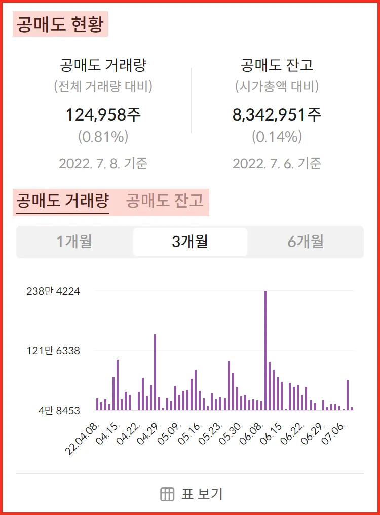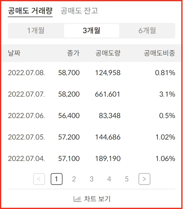 공매도 정보를 조회하고자 하는 기간을 슬라이드 탭 버튼을 통해 변경해보세요.