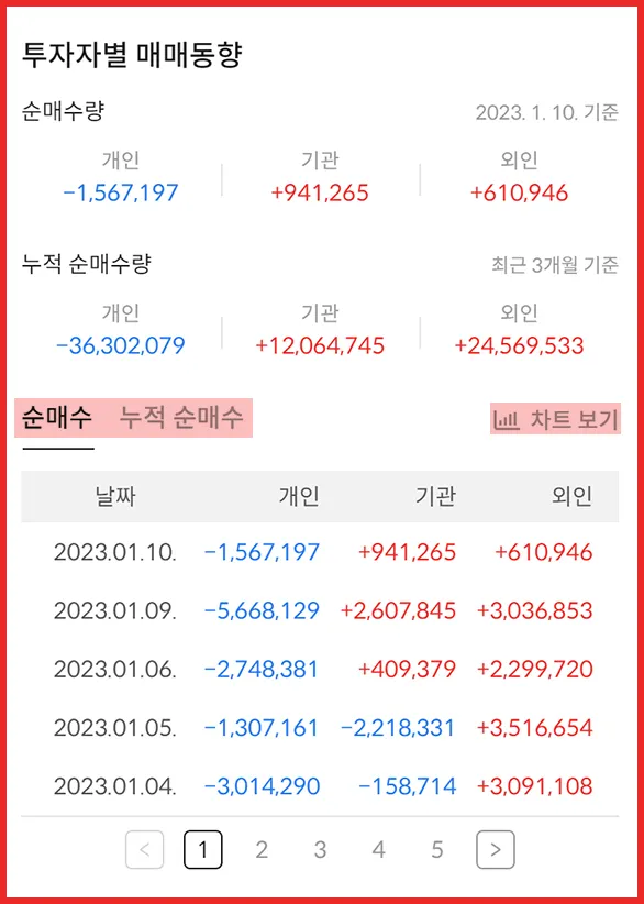 투자성향에 따라 순매수/누적순매수 정보를 활용할 수있습니다.