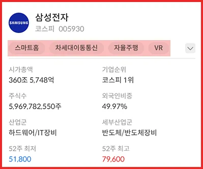 시가총액, 주식수, 외국인비율, 52주 최고/최저가 등 기업의 기본 정보를 한눈에 확인할 수 있습니다.