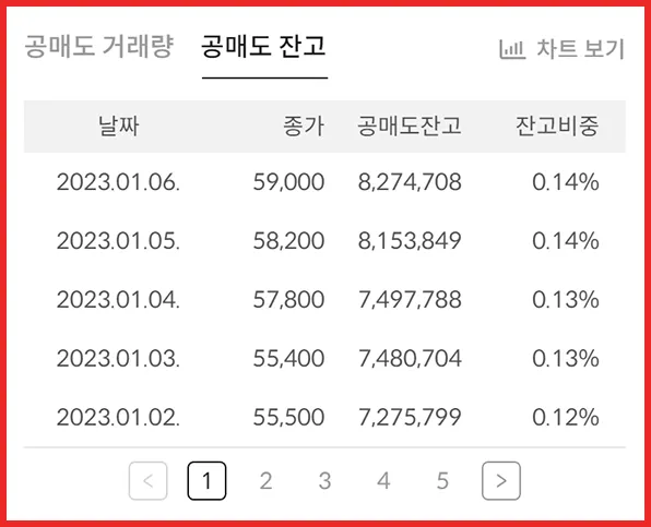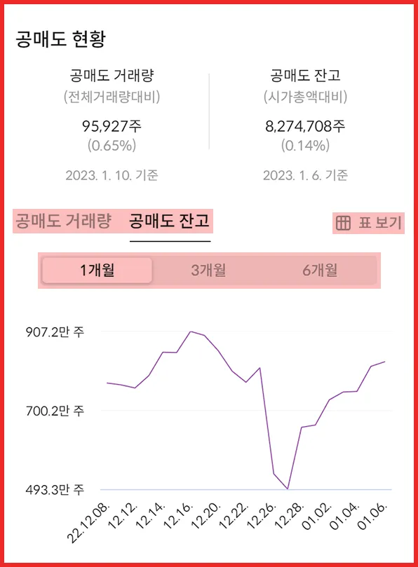 공매도 정보를 조회하고자 하는 기간을 슬라이드 탭 버튼을 통해 변경해보세요.