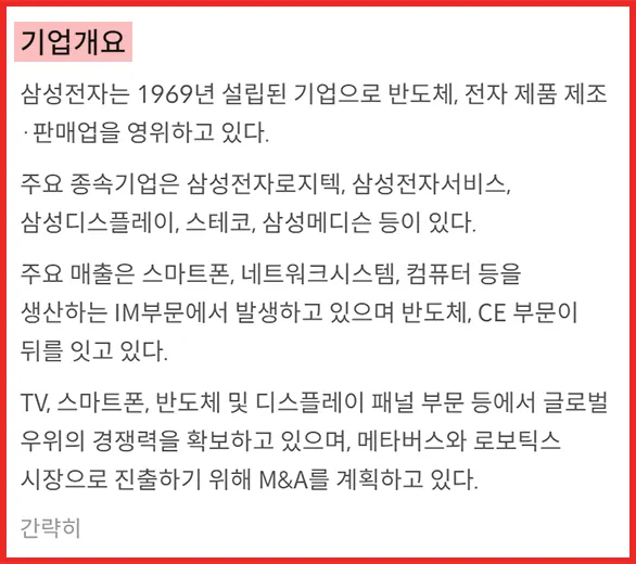 내 종목의 연혁과 주력 제품, 사업 계획등이 정리 된 기업 정보를 확인할 수 있습니다.
