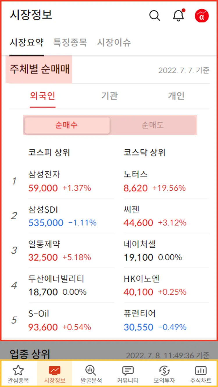 외국인/기관/개인이 많이 매매한 종목을 확인할 수 있습니다.