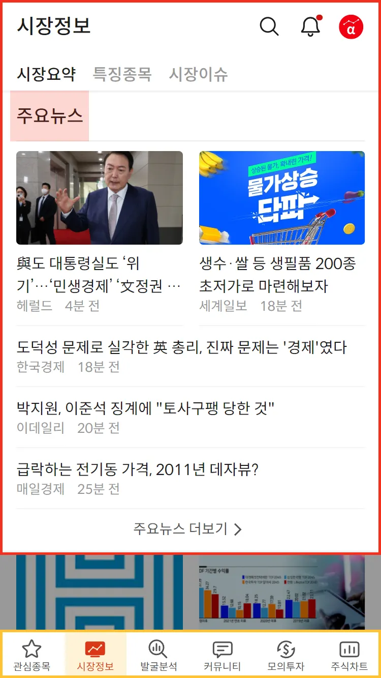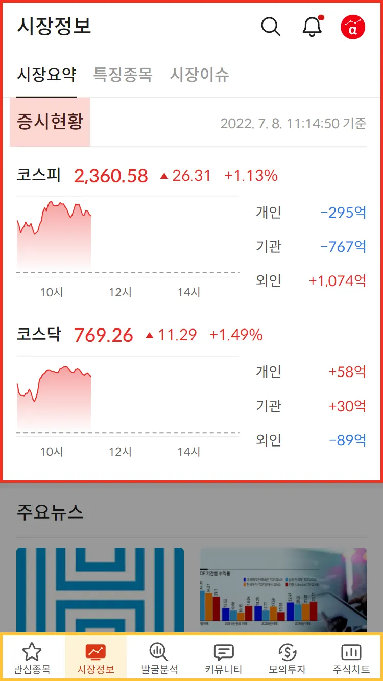 더 많은 시장 뉴스들을 보기 위해서 소제목 '주요뉴스' 옆의 화살표를 클릭해보세요.