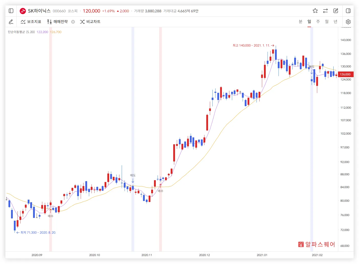알파스퀘어 매매전략 - 단순이평선 교차
