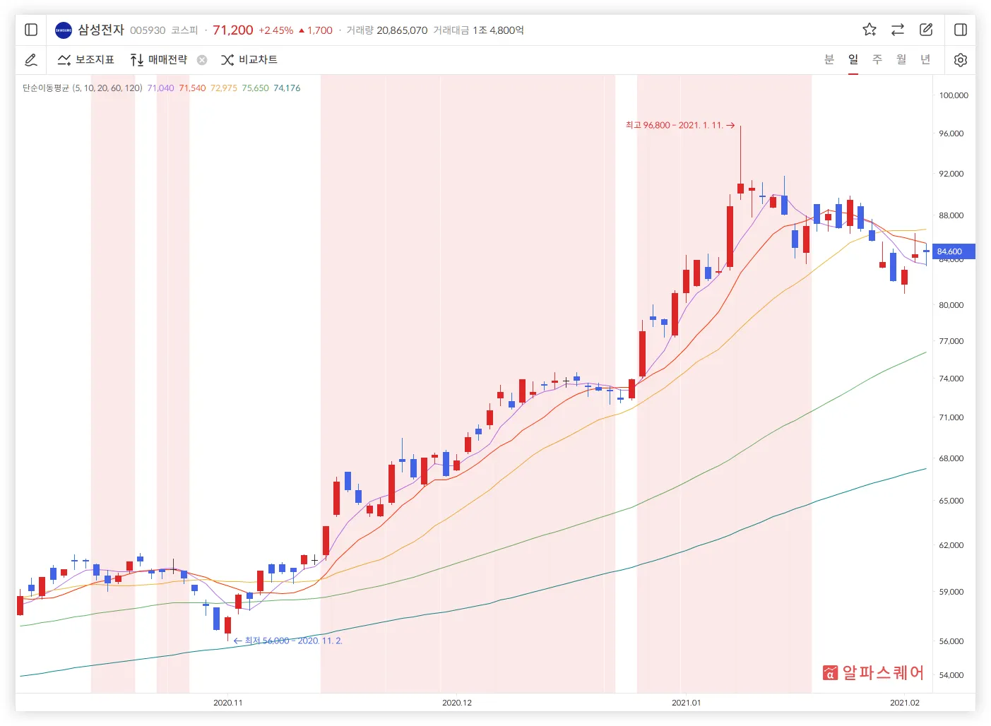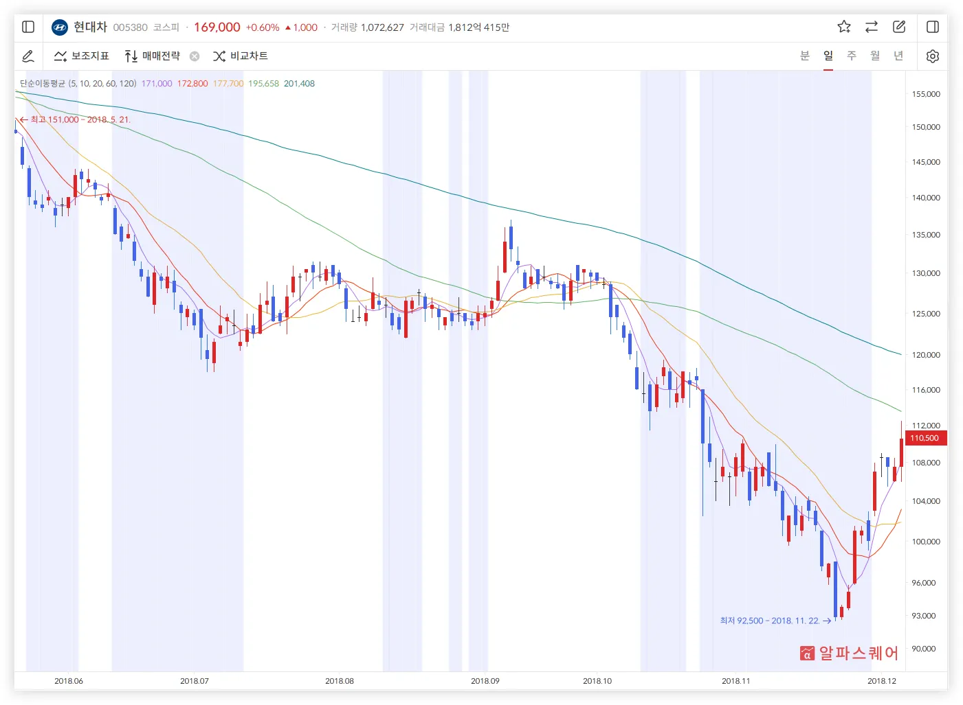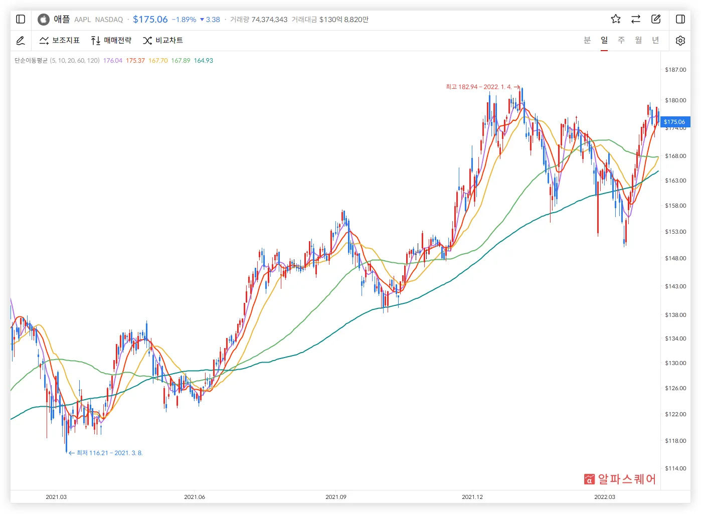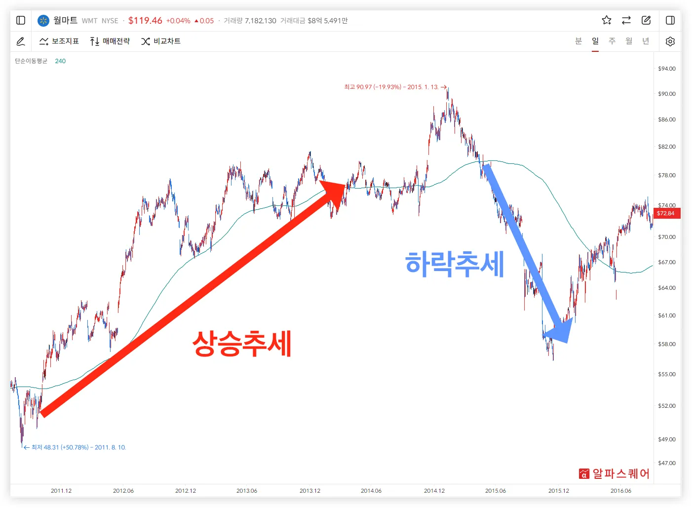 알파스퀘어 매매전략 - 단순이평선 정배열