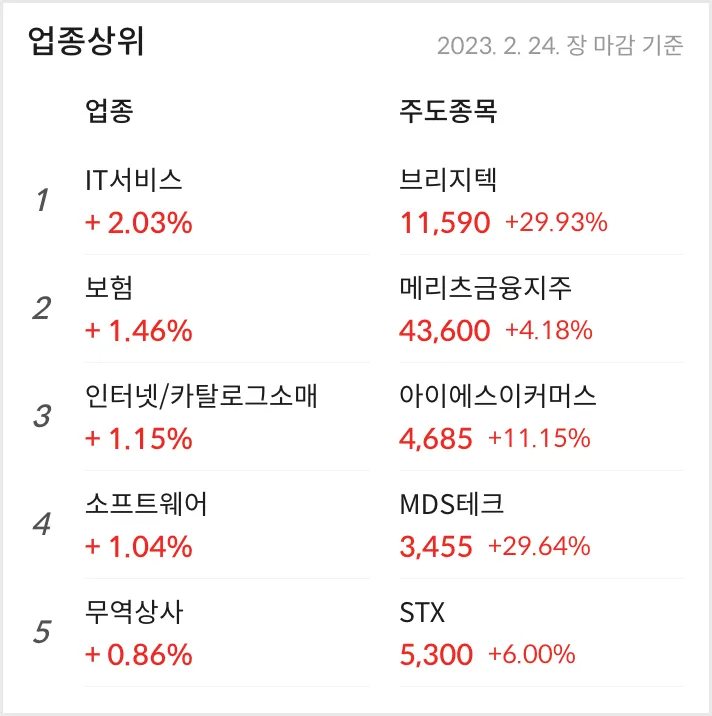 시장요약 내 업종현황 정보구조가 개편되었습니다.