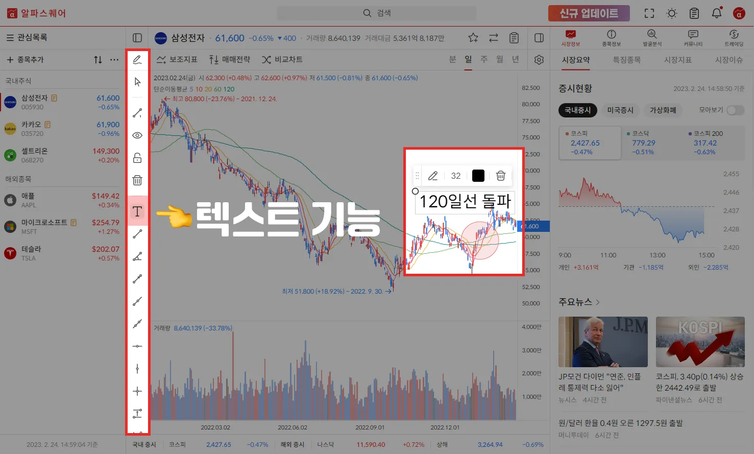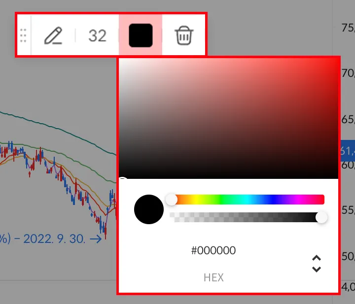 주가차트의 보조지표, 비교차트의 색상 스타일 설정 화면에서 색상의 투명도를 바꾸는 기능이 정상적으로 동작하지 않는 오류를 수정했습니다.