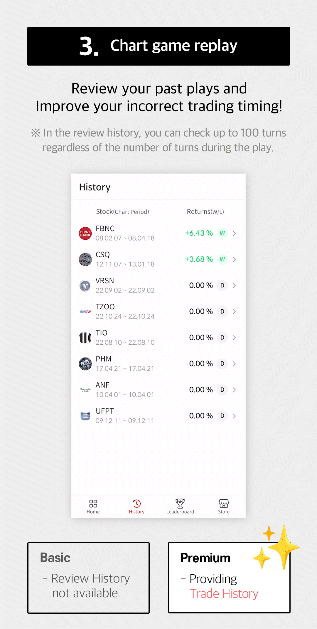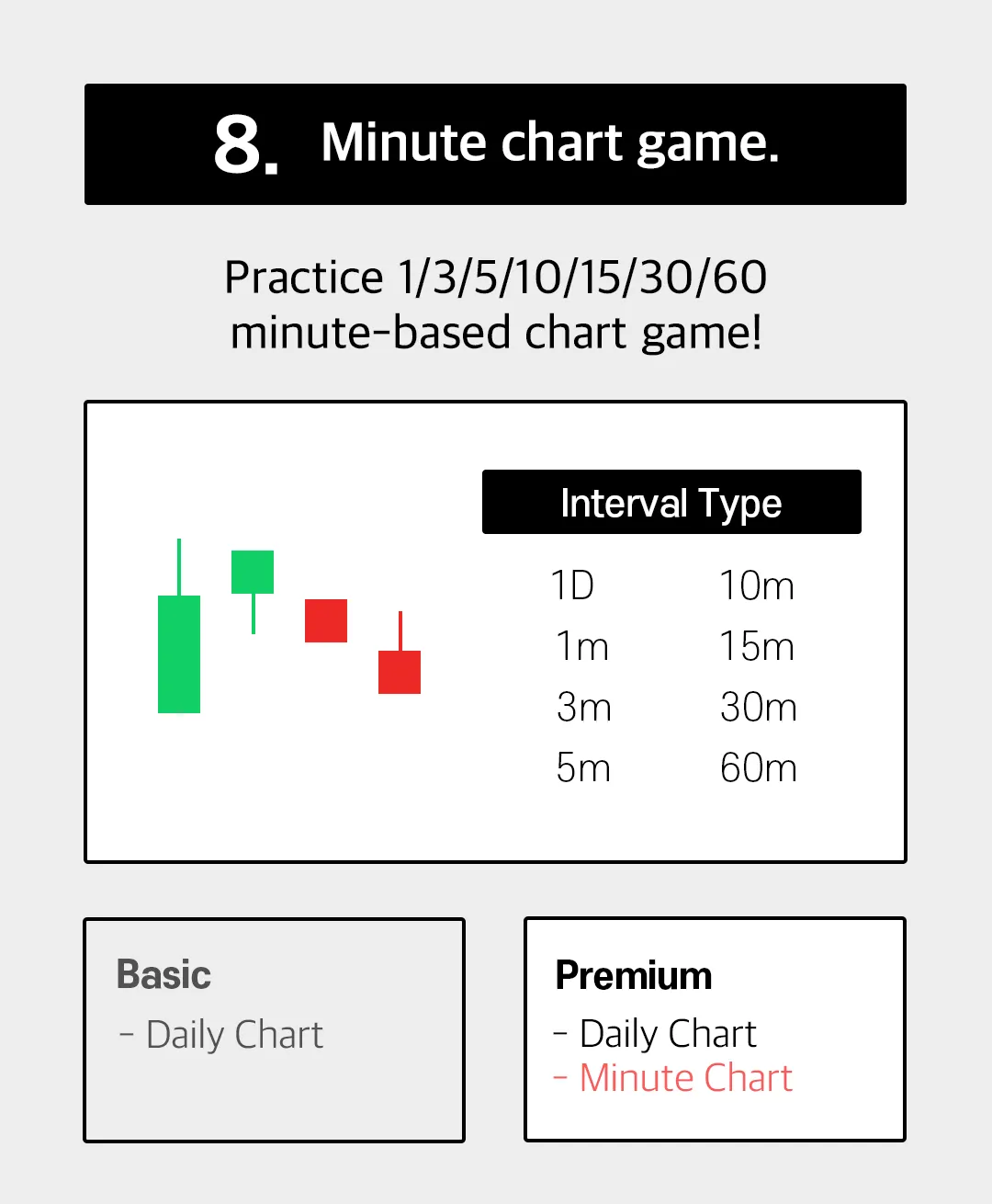 Available 24/7 and with instant validation, the simulator uses real historical stock data to provide a safe and simulated environment where you can improve your chart trading skills and compete with friends on the leaderboard.