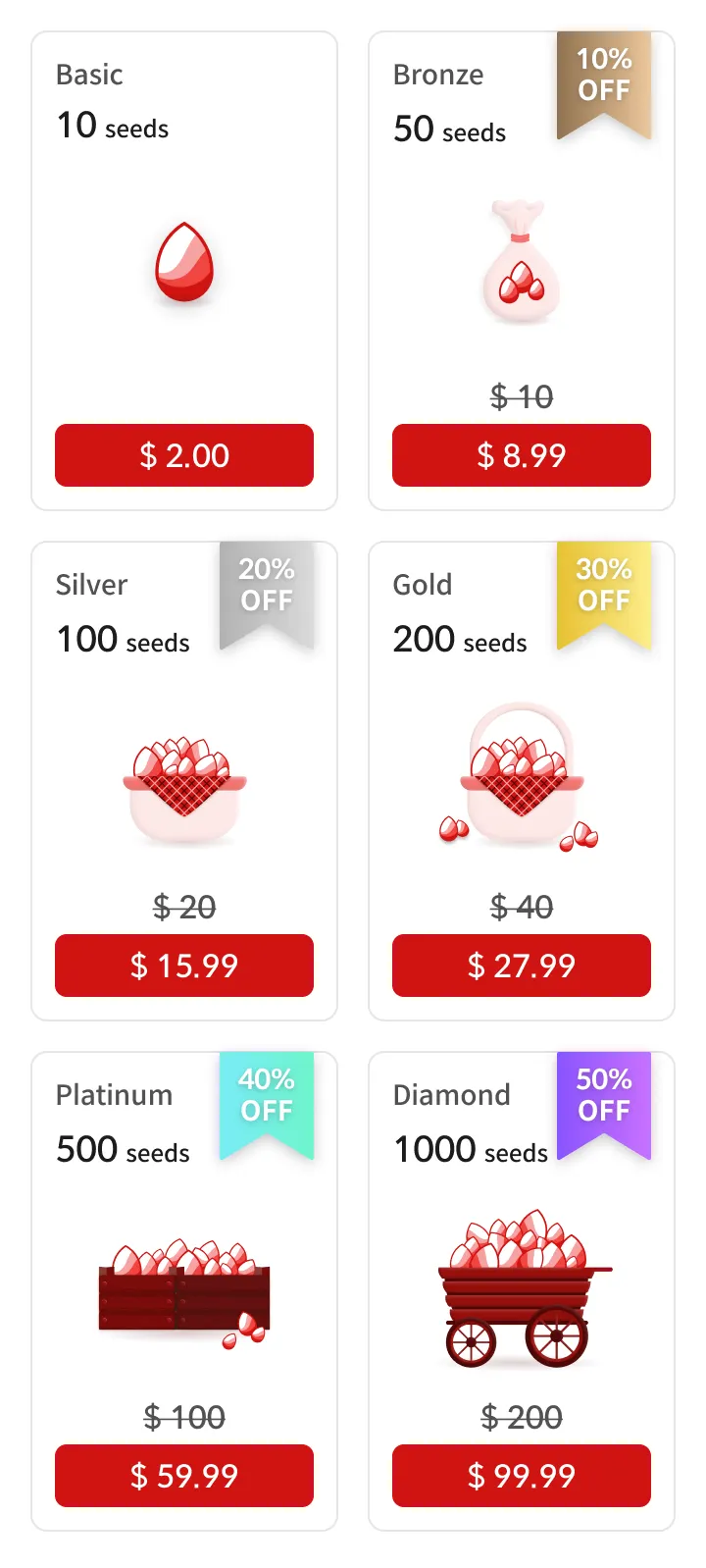 When you sign up for the first time, you will receive 20 free seeds, which have a value of $4.