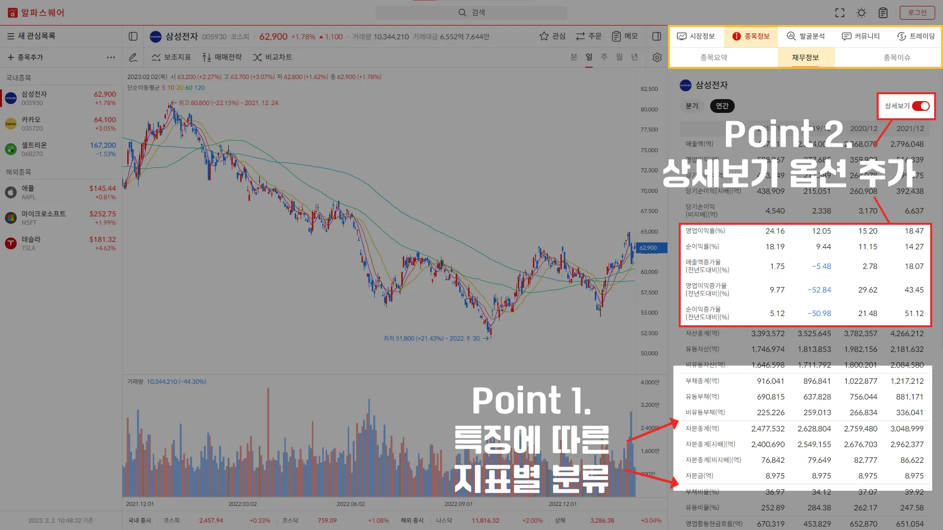 재무정보 UI 개편, 제공 지표 추가