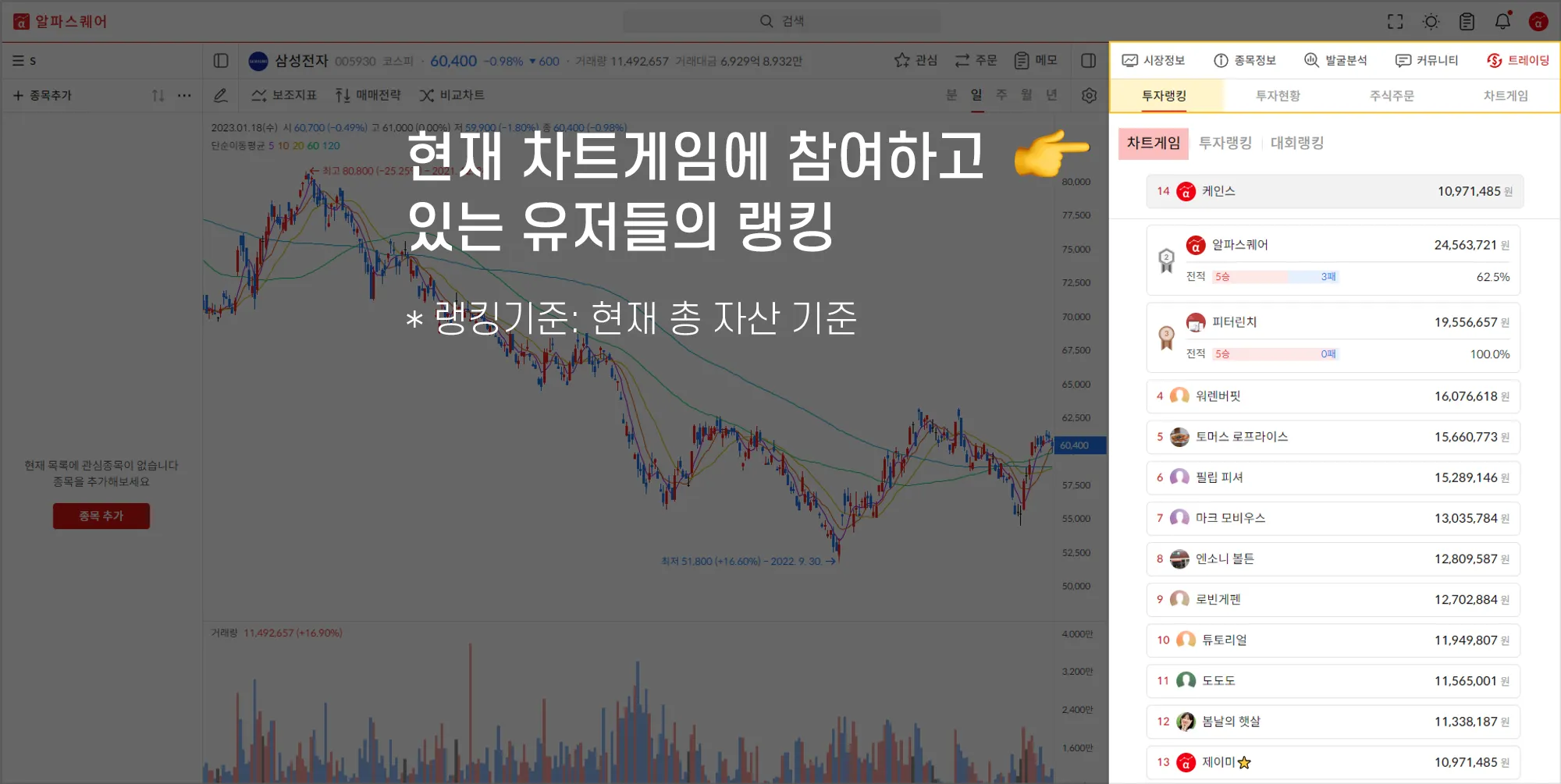 * 랭킹기준: 현재 총 자산 기준