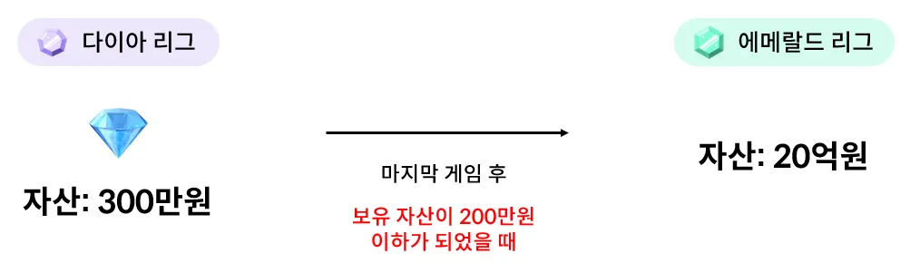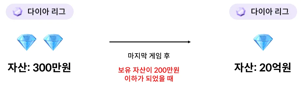 ※ 현재 다이아몬드 리그에서 200만원 이하의 자산을 보유하고 계신 분들은 적용일 6/16(금)일 기준, 강등 조건에 따라 자동으로 반영됩니다.