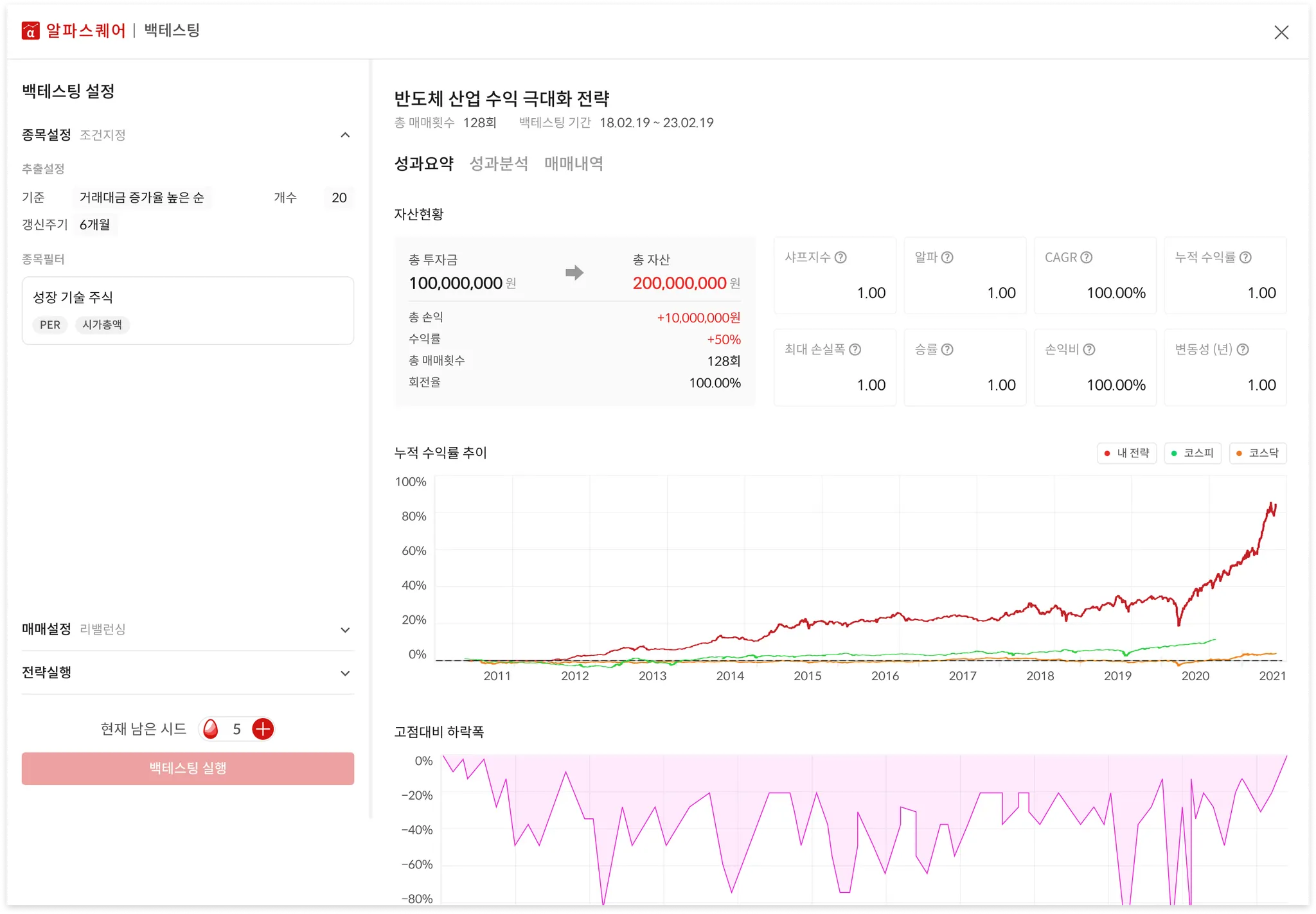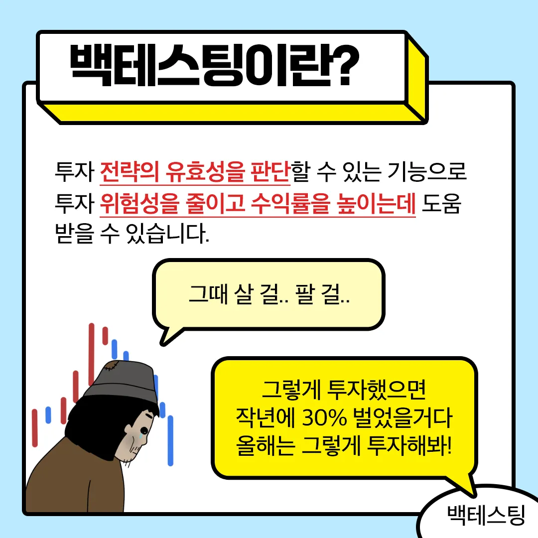 백테스팅은 내 투자 전략의 유효성을 판단할 수 있는 기능입니다.