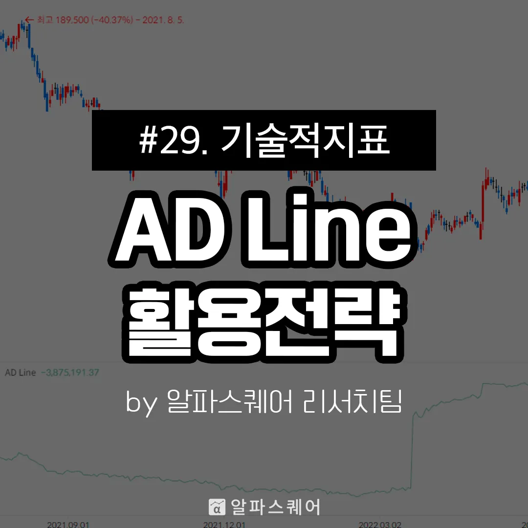 AD Line(Accumulation/Distribution Line, 누적확산지수)는 가격과 거래량에 기반한 보조지표로, 가격 움직임에 동반되는 거래량이 많을수록 향후 가격의 움직임이 더 커진다는 원리를 바탕으로 한다. 하루의 변동 폭 대비 종가의 상대적인 위치를 기반으로 매수와 매도의 상대적인 강도를 측정하며, 이를 통해 주식의 매집과 분산을 파악한다.