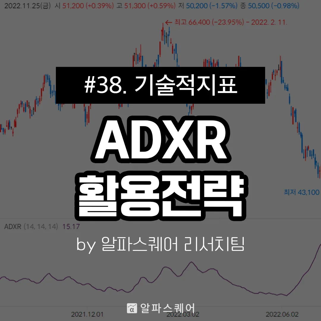 ADXR(Average Directional Movement Rating)은 ADX에서 한 단계 더 나아간 지표로, 당일의 ADX와 일정 기간 전 ADX의 평균값으로 산출한다. ADX와 마찬가지로 추세의 강도를 측정하지만, 변동을 최소화하여 좀더 명확한 추세를 파악할 수 있도록 한다.