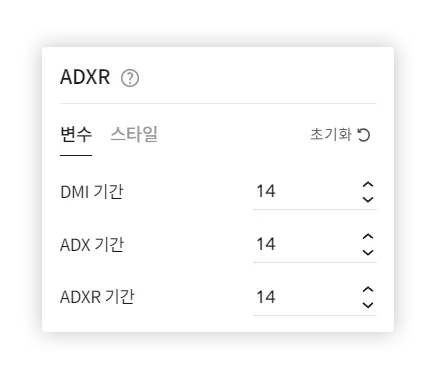 ADXR 기간: ADXR 산출을 위해 ADX의 평균 기간을 결정하는 값이다. 기본값은 14