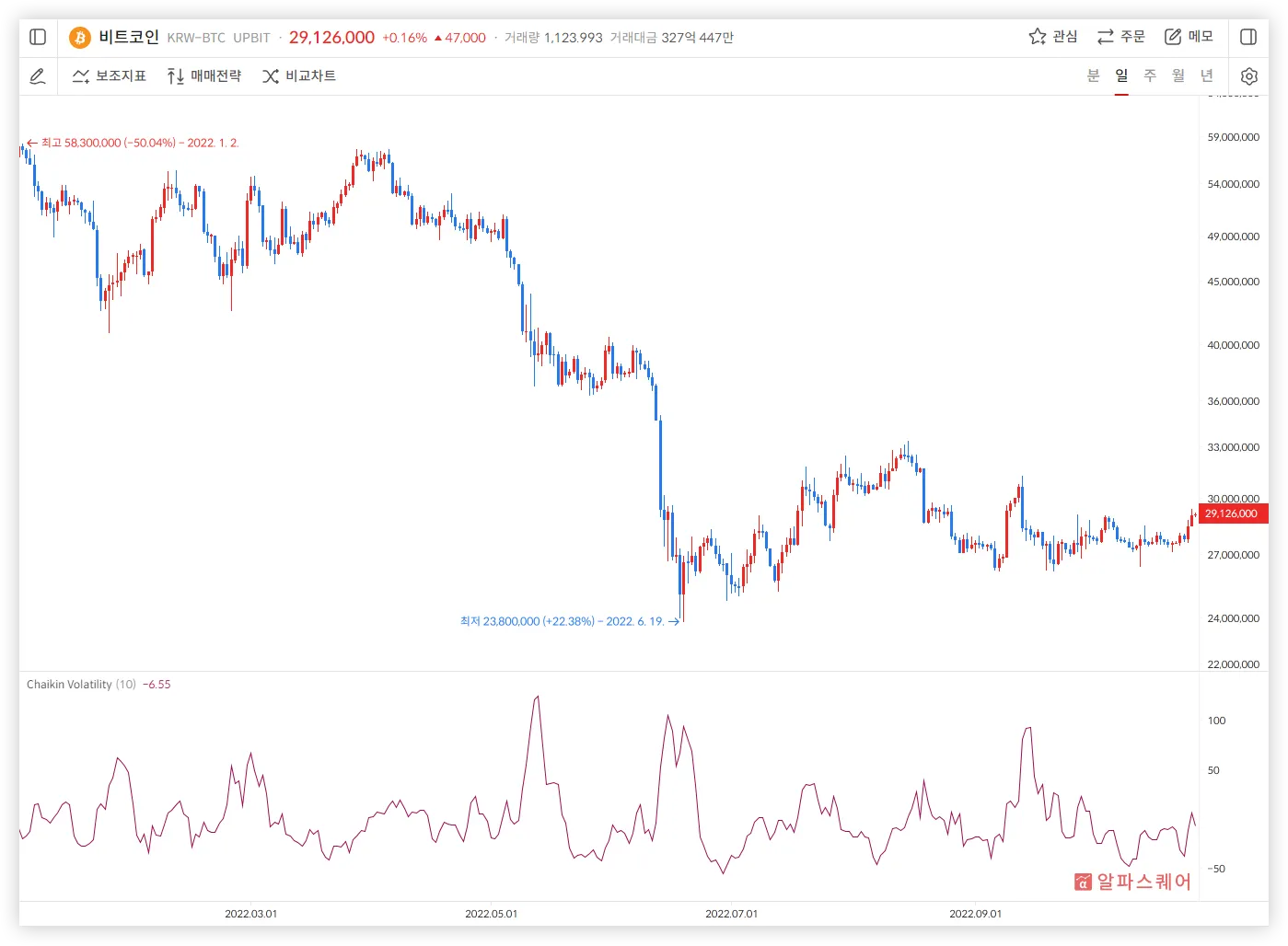 차이킨 변동성의 변화를 통해 추세의 전환을 파악할 수 있다.
