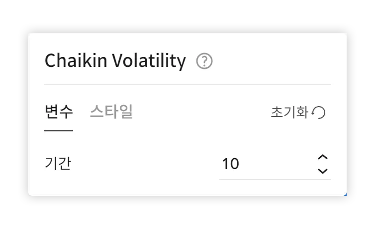 차이킨 변동성은 다음과 같은 방식으로 계산된다.