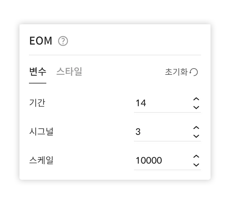 기간 : EMV를 산출할 때 단순이동평균을 계산할 기간 N이다. 기본값은 14