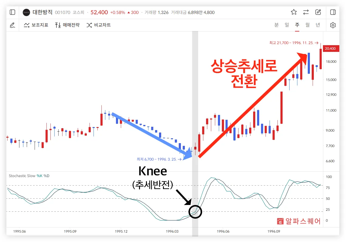 Stochastic-slow Knee 예시(차트: 알파스퀘어)