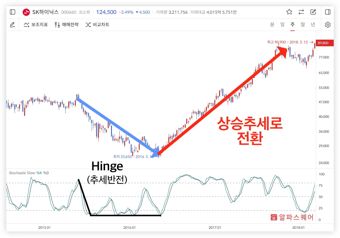 Stochastic-slow Hinge 예시(차트: 알파스퀘어)