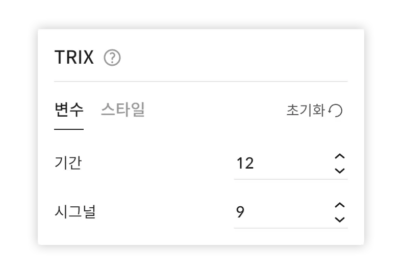 기간: TRIX 산출 시 사용되는 지수이동평균의 기간을 의미하며, n에 해당한다. 기본값은 12