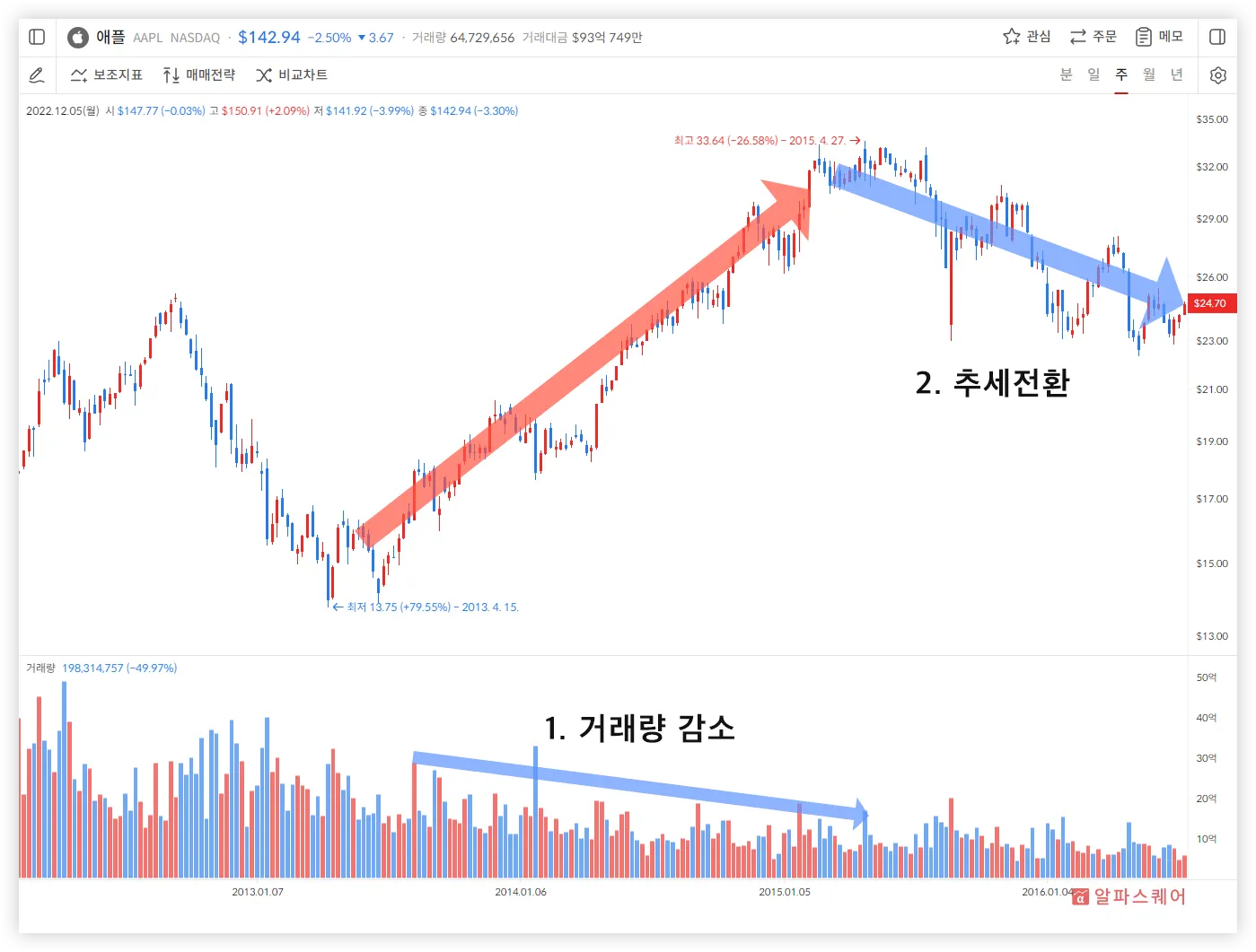 주가 추세와 거래량의 방향을 함께 살펴보면 도움이 된다.