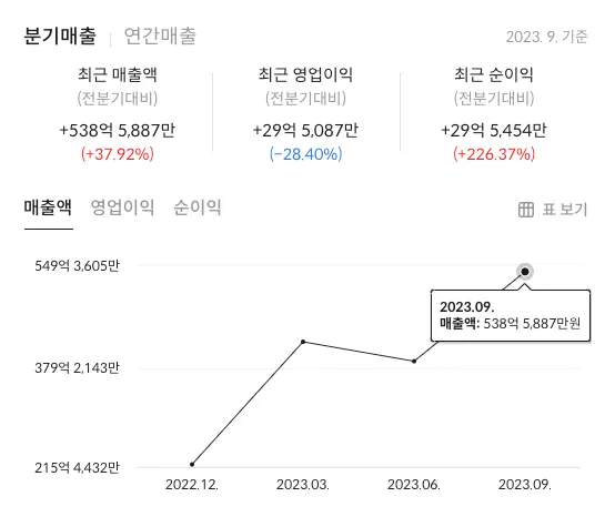 노랑풍선 매출 / 영업이익 / 순이익