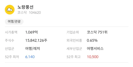 노랑풍선은 2001년 8월 설립된 기업으로 일반 여행업(여행알선) 및 항공권 및 선표 발권 판매업 등을 영위하고 있다.