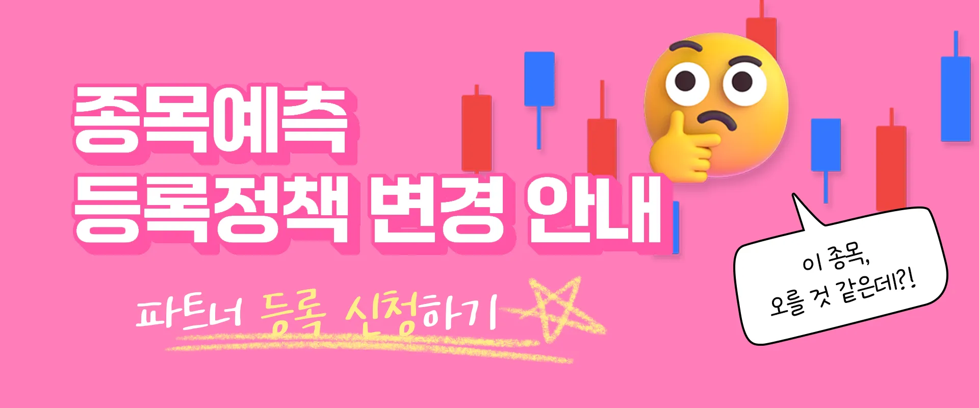 이용해주시는 유저 여러분들의 목소리에 따라 종목예측 등록 정책이 변경되었습니다.