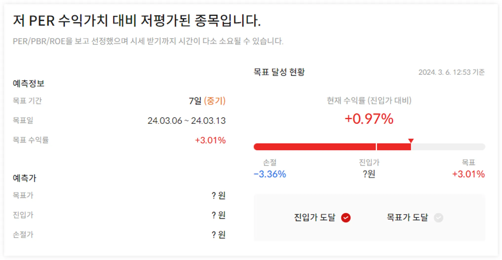 종목예측 상세페이지 내부 진입가 대비 현재가 표기 변경