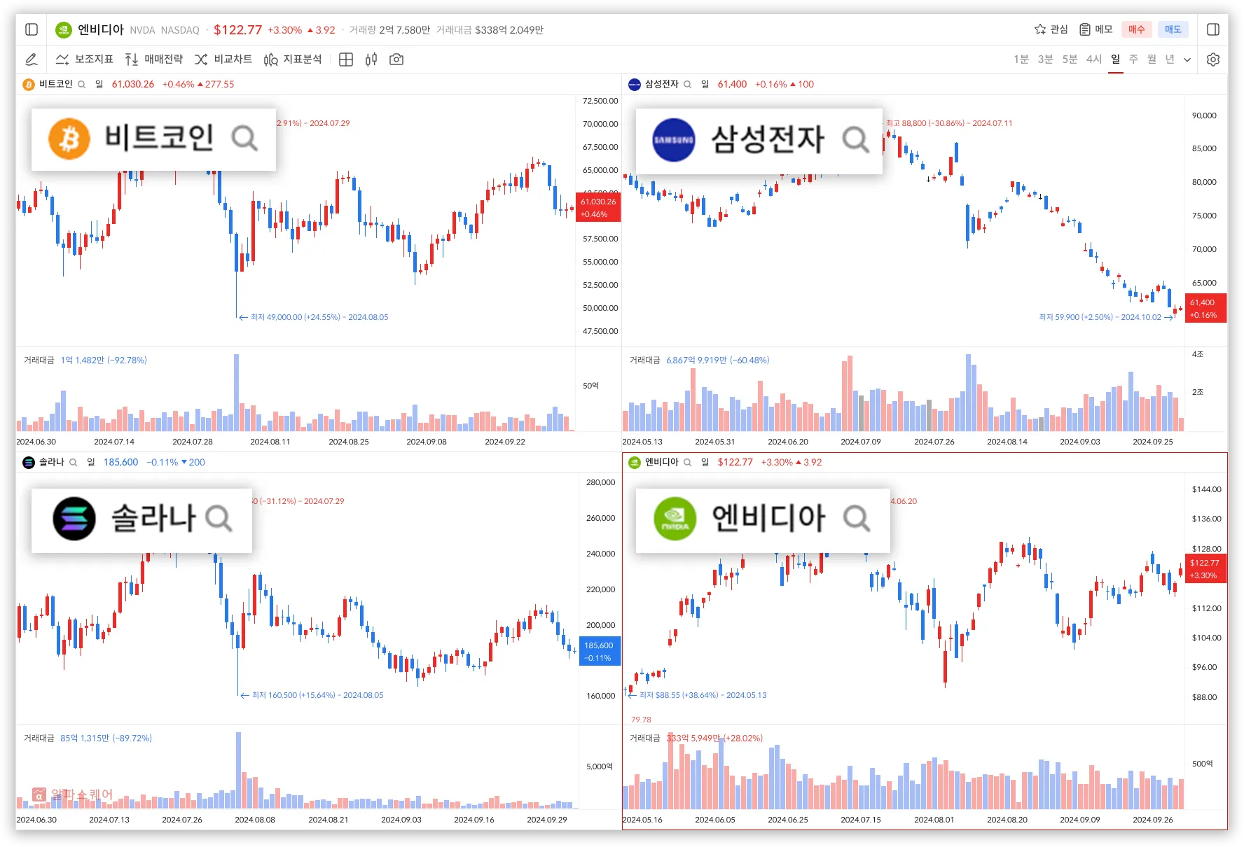 ※ 단, 차트게임, 매매신호, 지표분석, AI예측은 KRX시세 기준으로 계산됩니다.